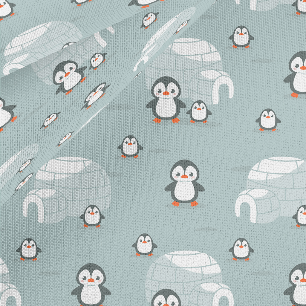 企鵝家族與冰屋牛津布(幅寬150公分)