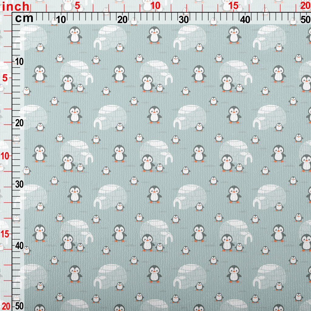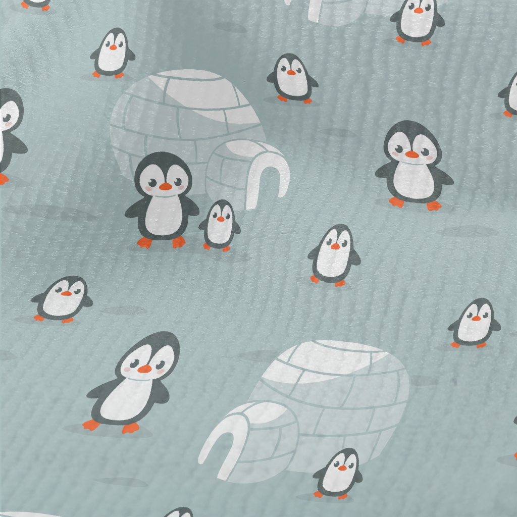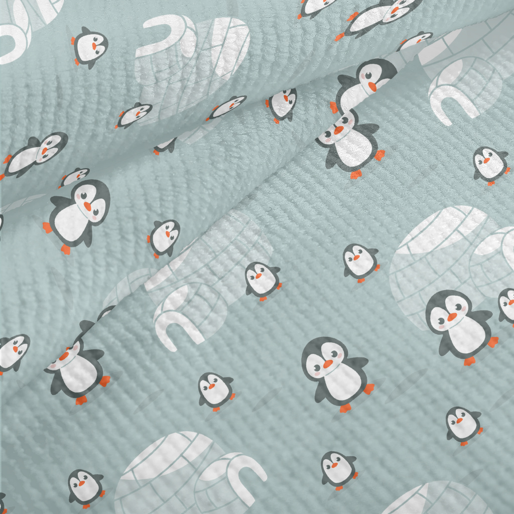 企鵝家族與冰屋毛巾布(幅寬160公分)