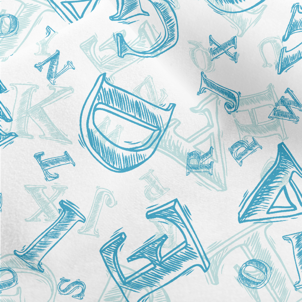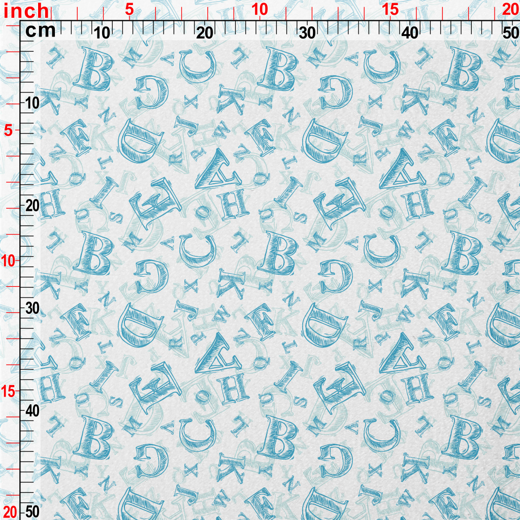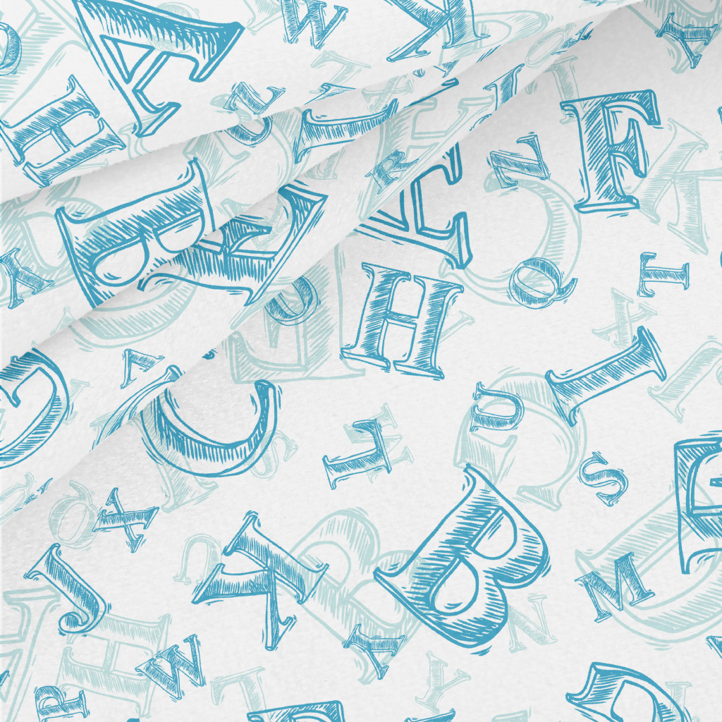 手繪藍色字母水晶絨(幅寬160公分)