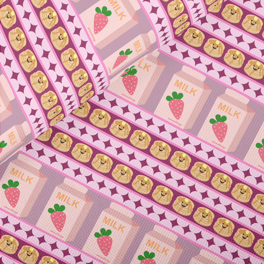 草莓牛奶與鬆餅高爾布(幅寬180公分)