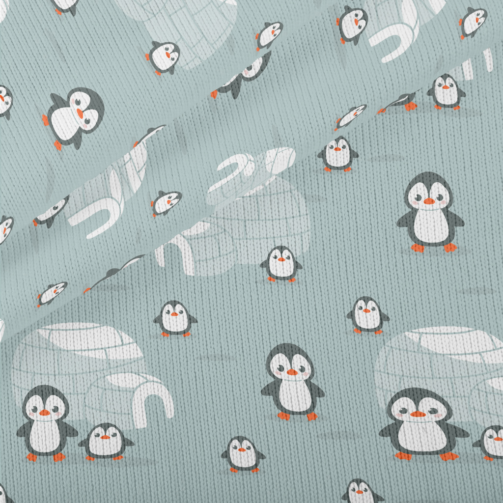 企鵝家族與冰屋仿毛衣布(幅寬150公分)