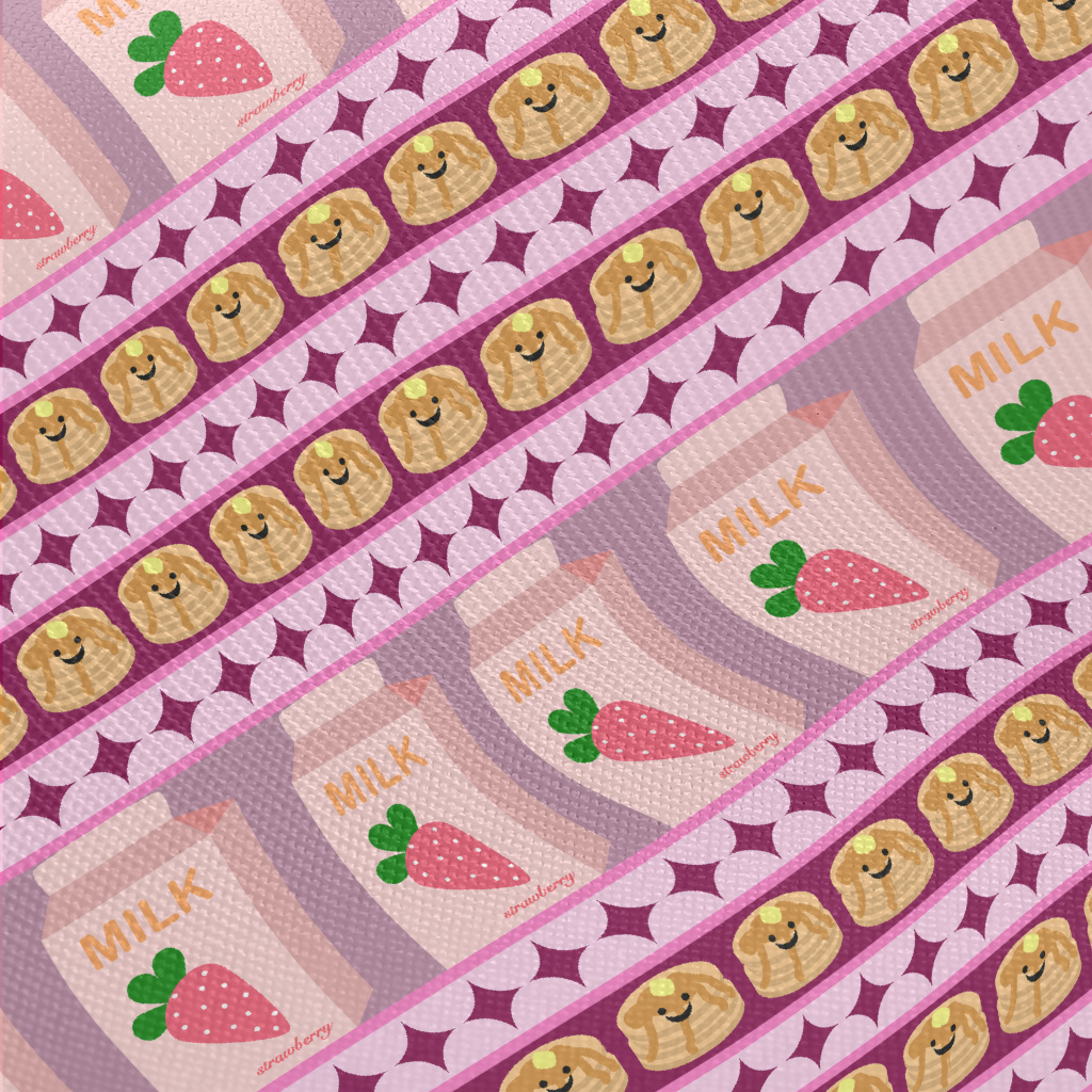 草莓牛奶與鬆餅厚棉布(幅寬150公分)