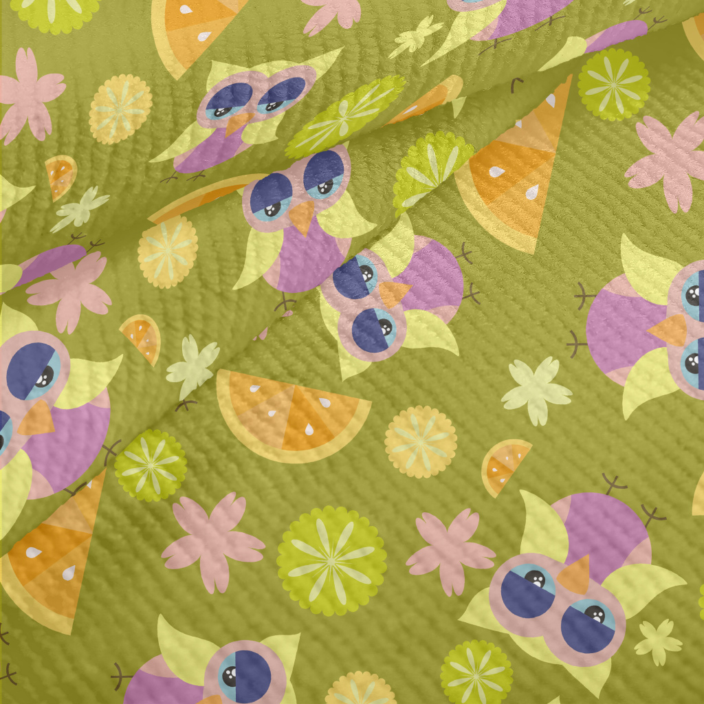 卡通鸚鵡與水果毛巾布(幅寬160公分)