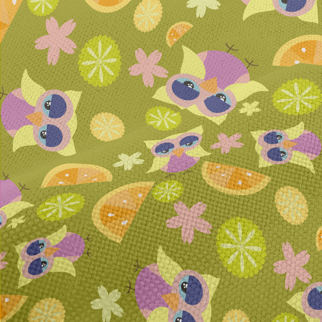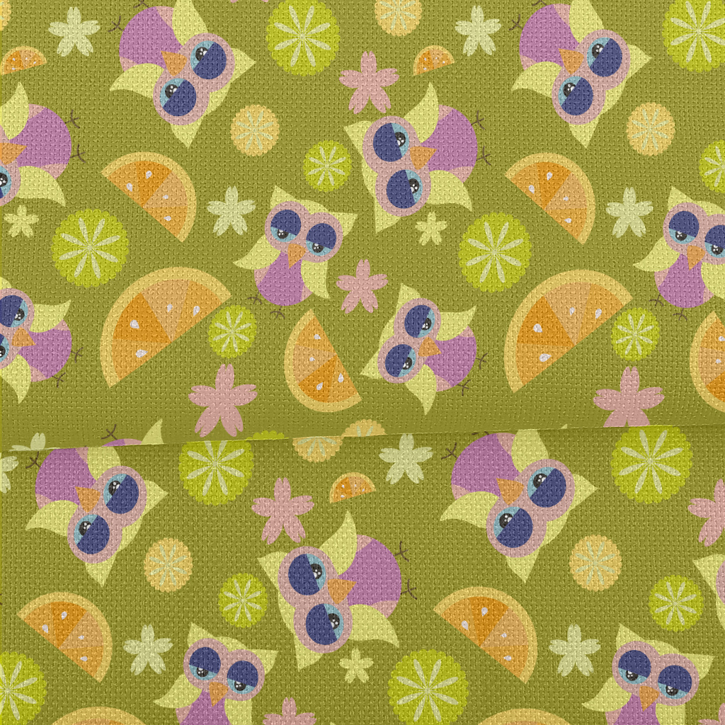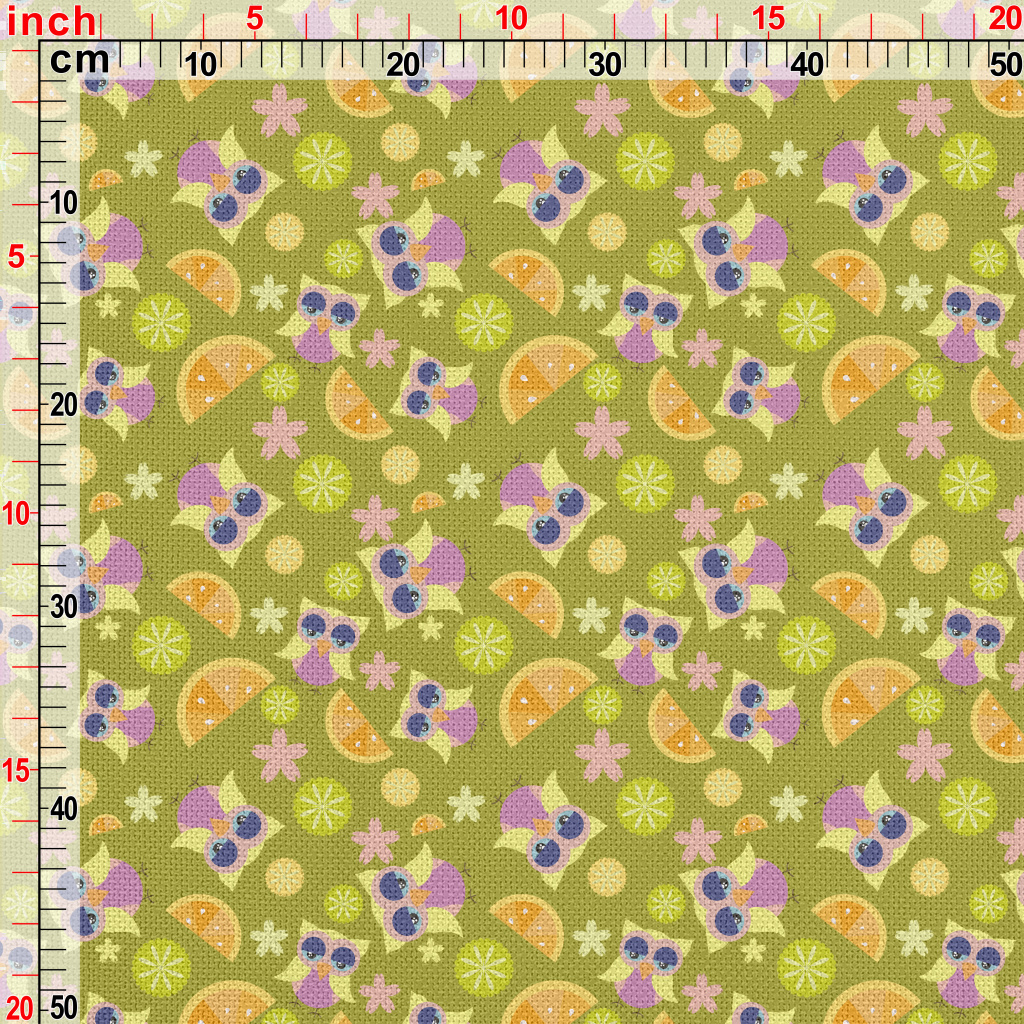 卡通鸚鵡與水果麻布(幅寬150公分)