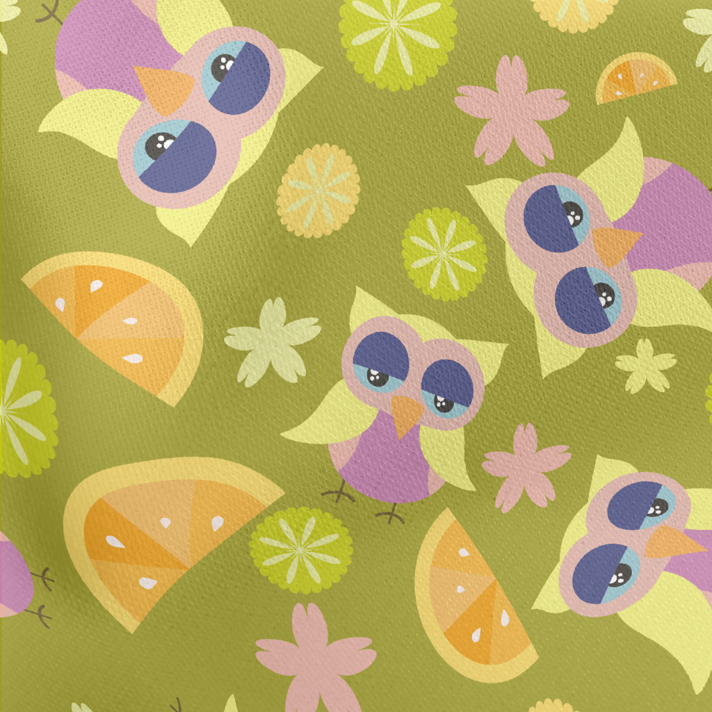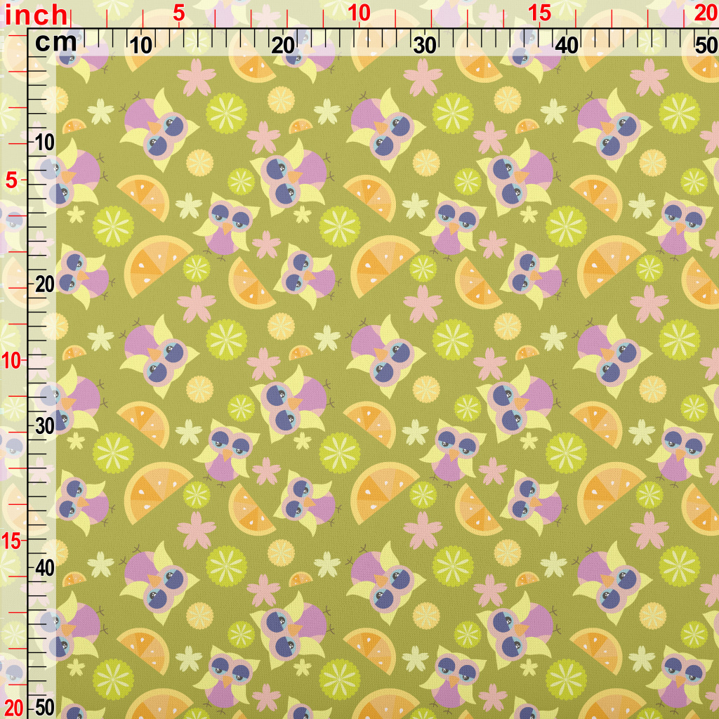 卡通鸚鵡與水果羅馬布(幅寬160公分)