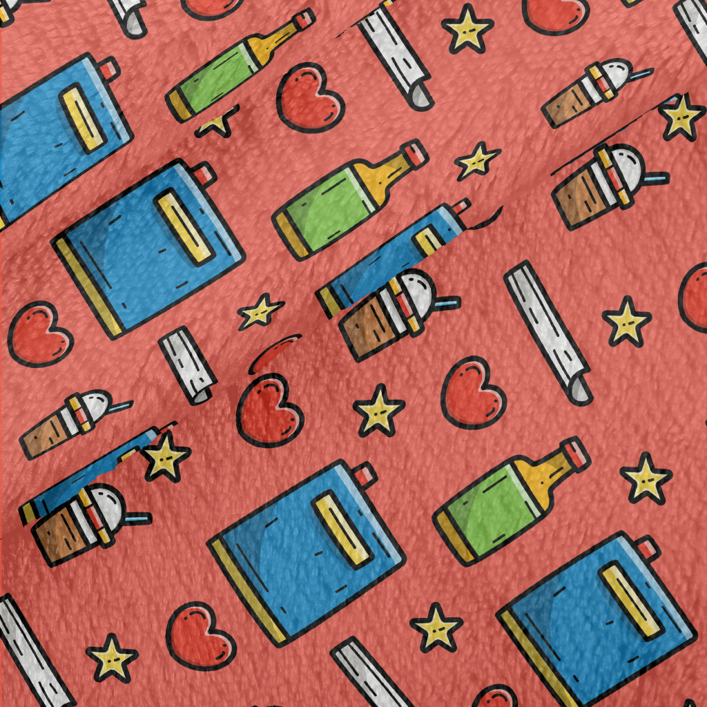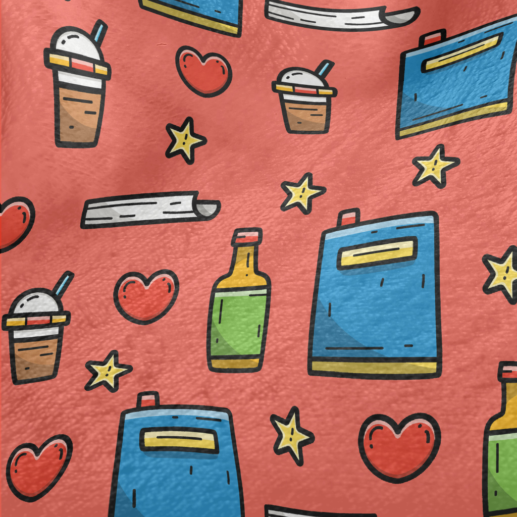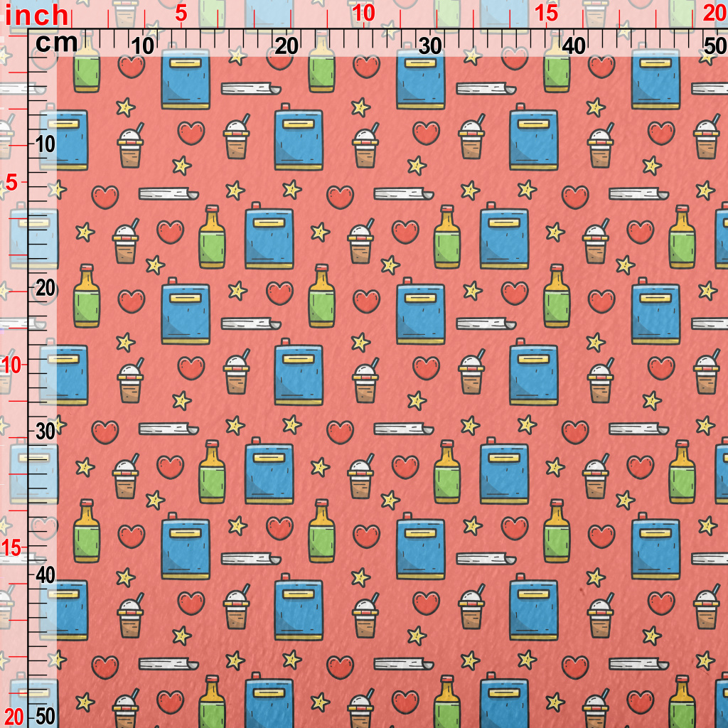 手繪卡通飲料法蘭絨(幅寬150公分)