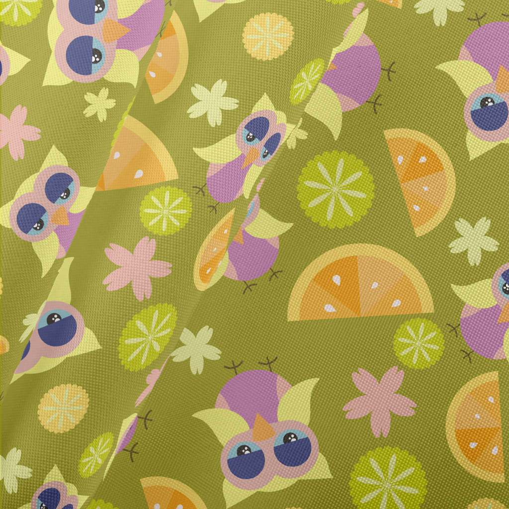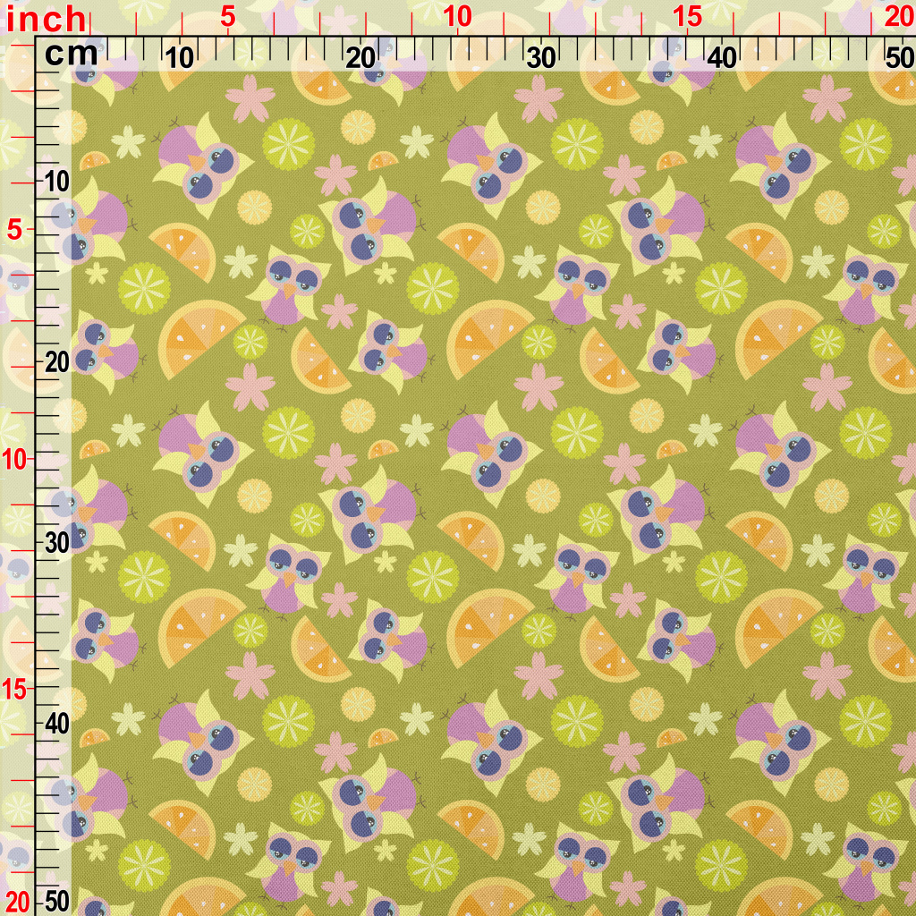 卡通鸚鵡與水果春亞紡(幅寬160公分)