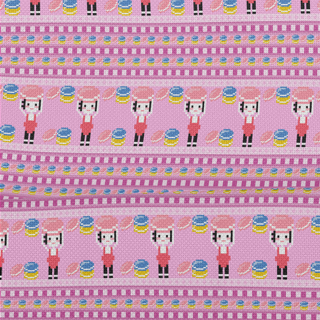 像素馬卡龍女孩麻布(幅寬150公分)