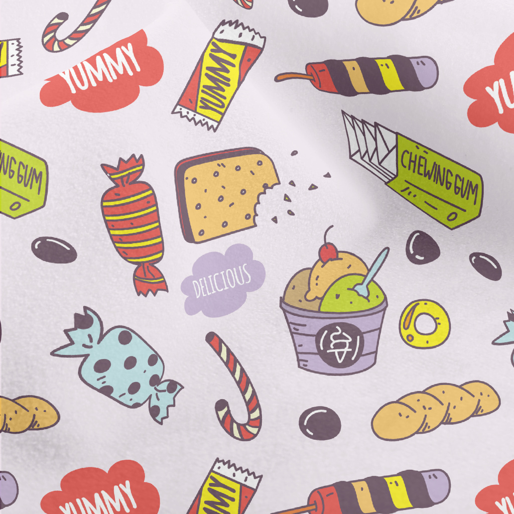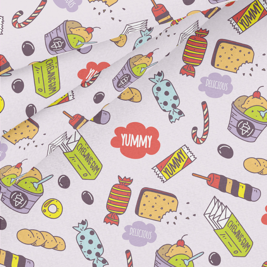 可愛手繪零食水晶絨(幅寬160公分)
