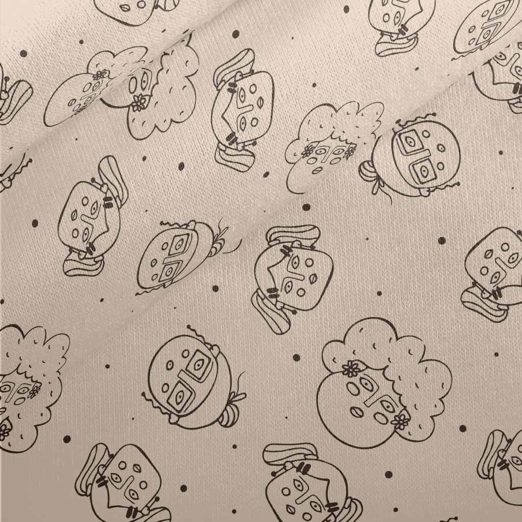 逗趣手繪人臉刷毛布(幅寬150公分)
