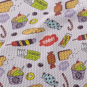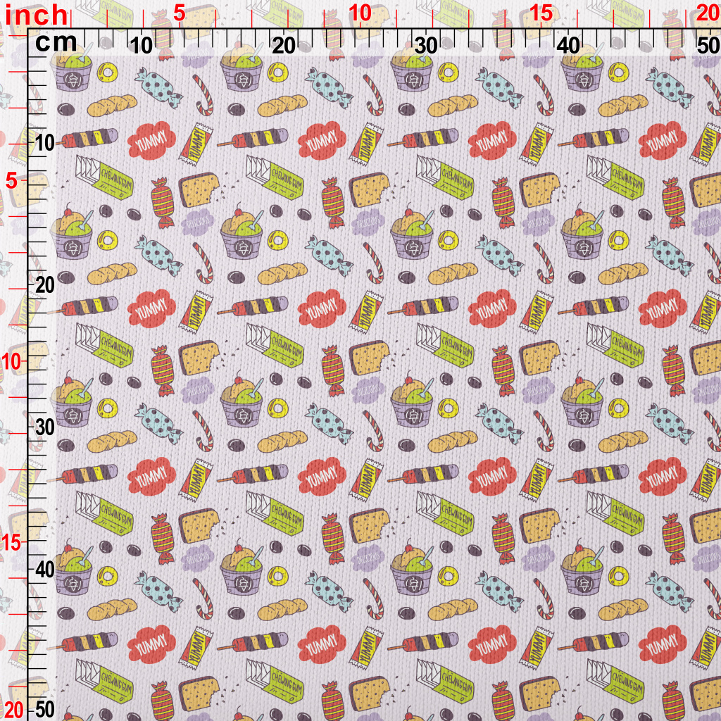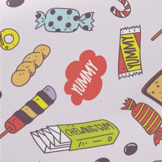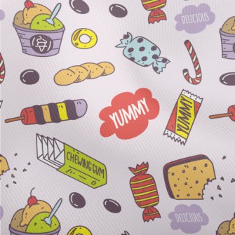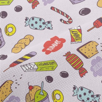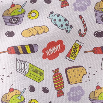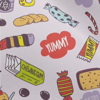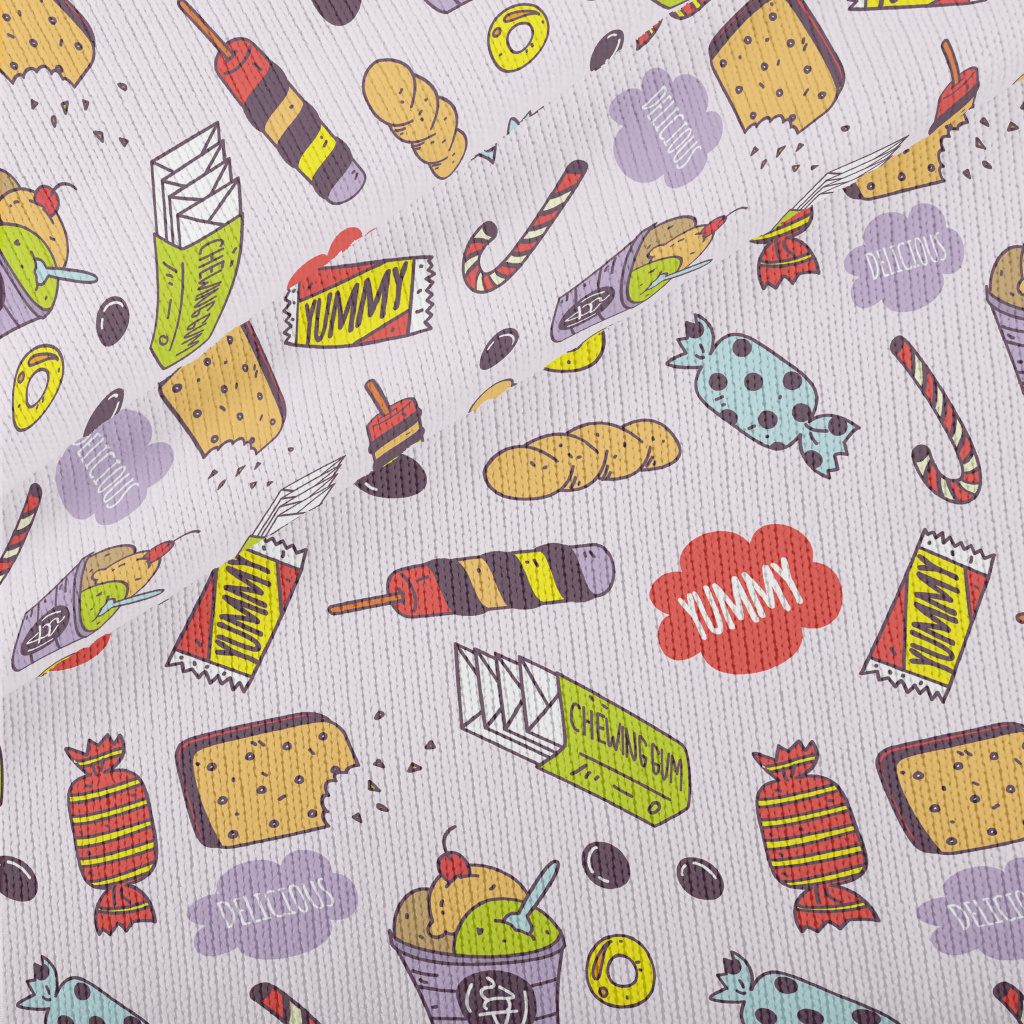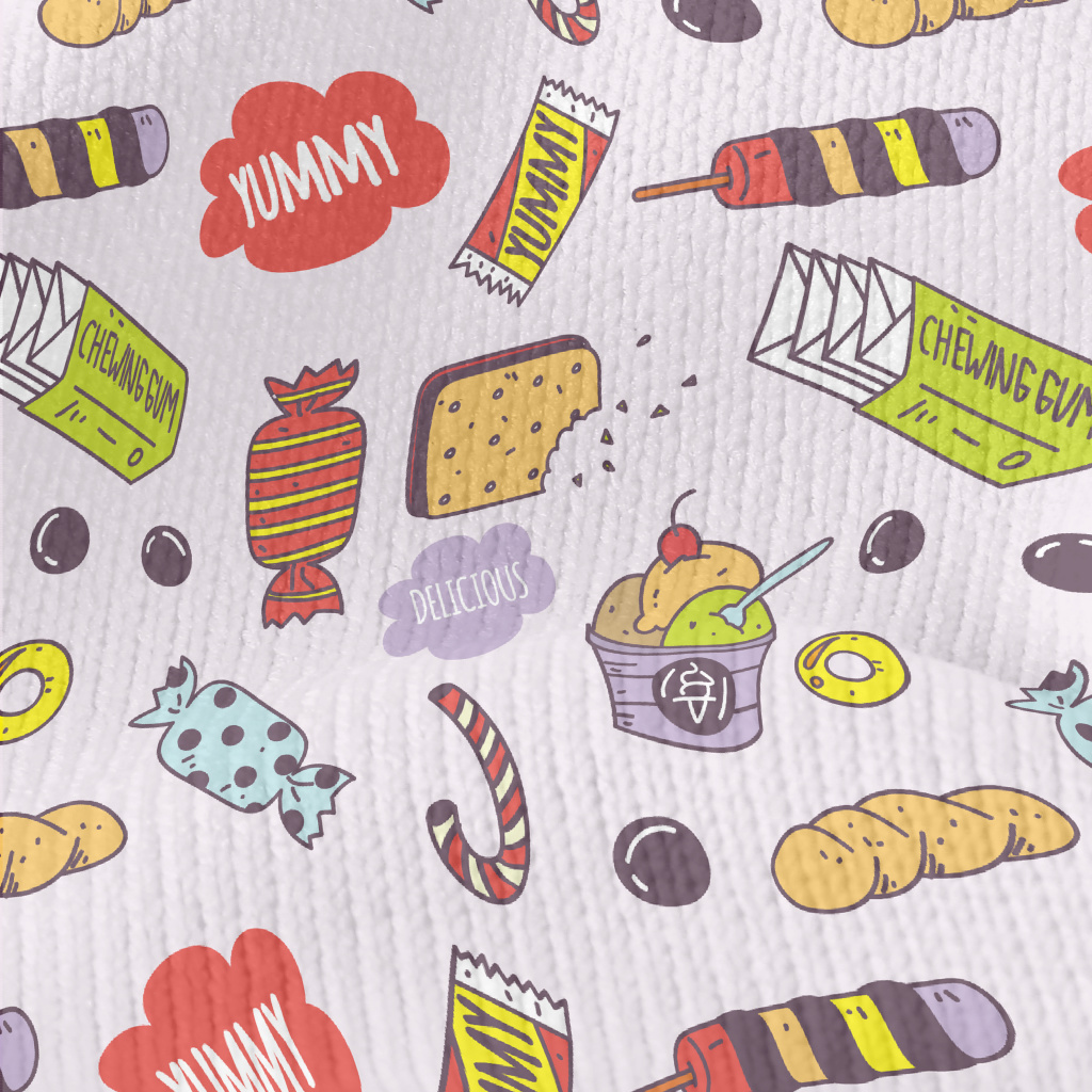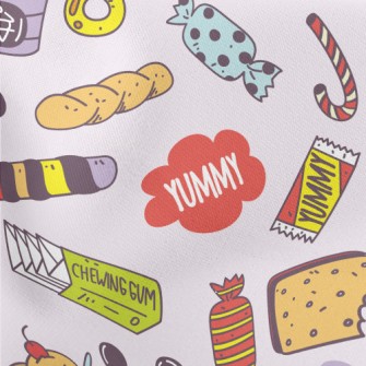 可愛手繪零食仿毛衣布(幅寬150公分)