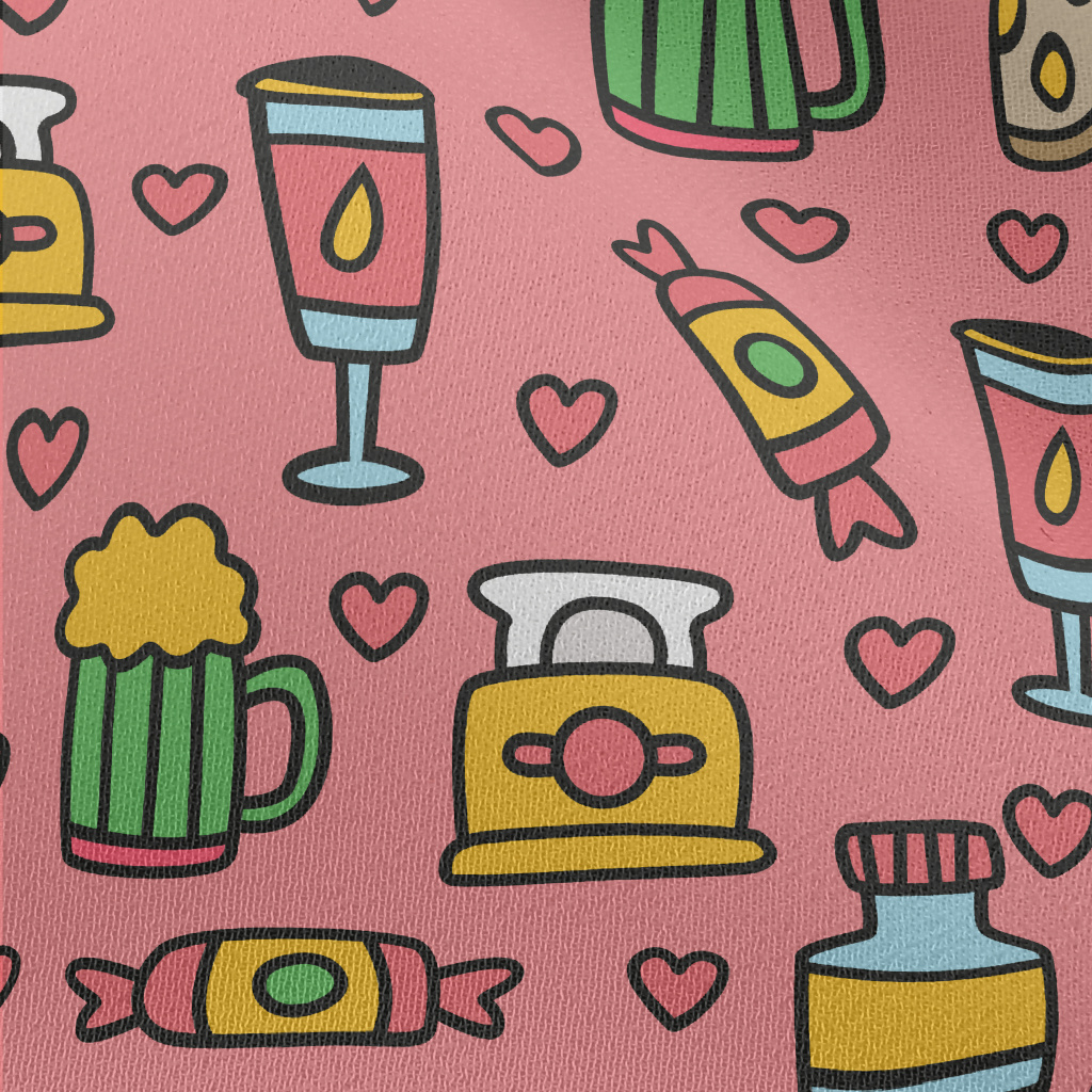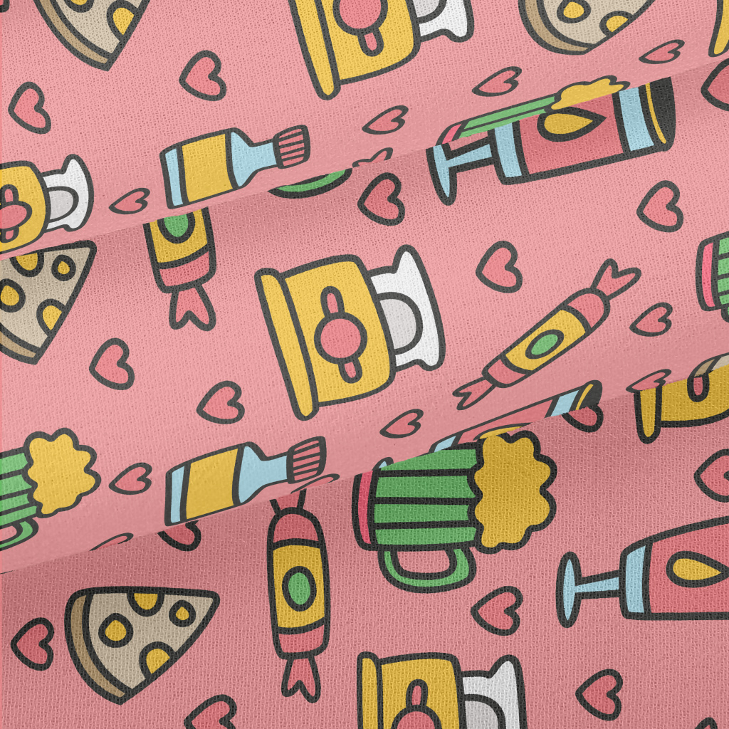 卡通酒吧食物雪紡布(幅寬150公分)