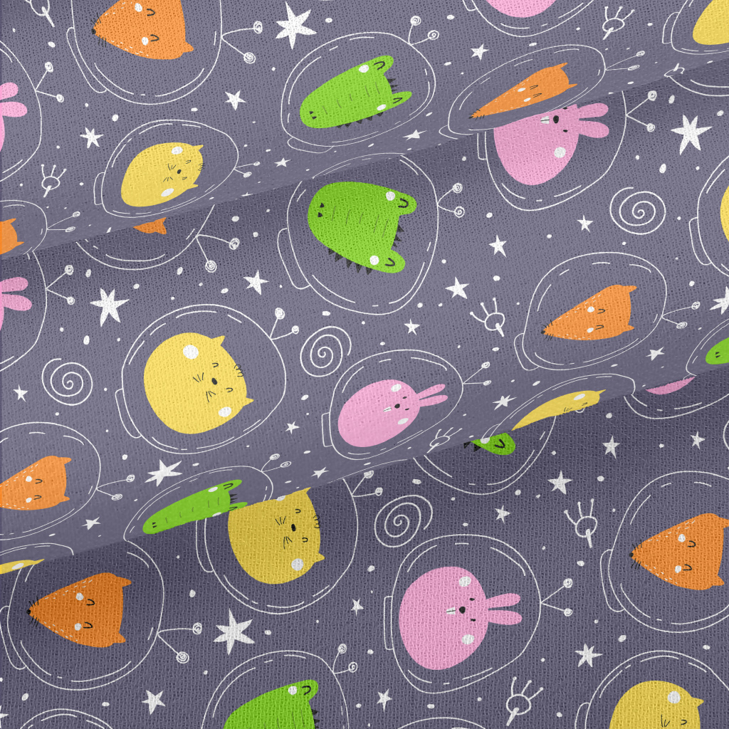 彩色動物太空人雪紡布(幅寬150公分)