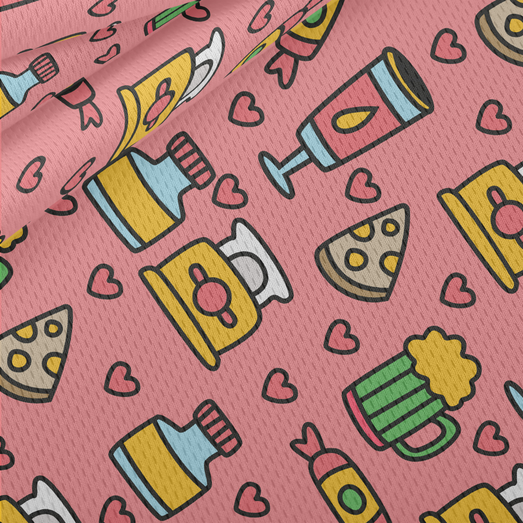 卡通酒吧食物鳥眼布(幅寬160公分)