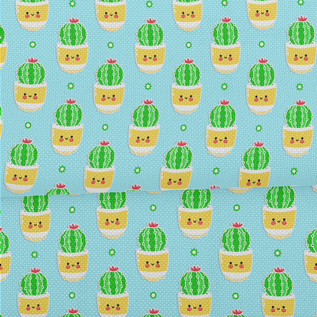 可愛笑臉仙人掌麻布(幅寬150公分)