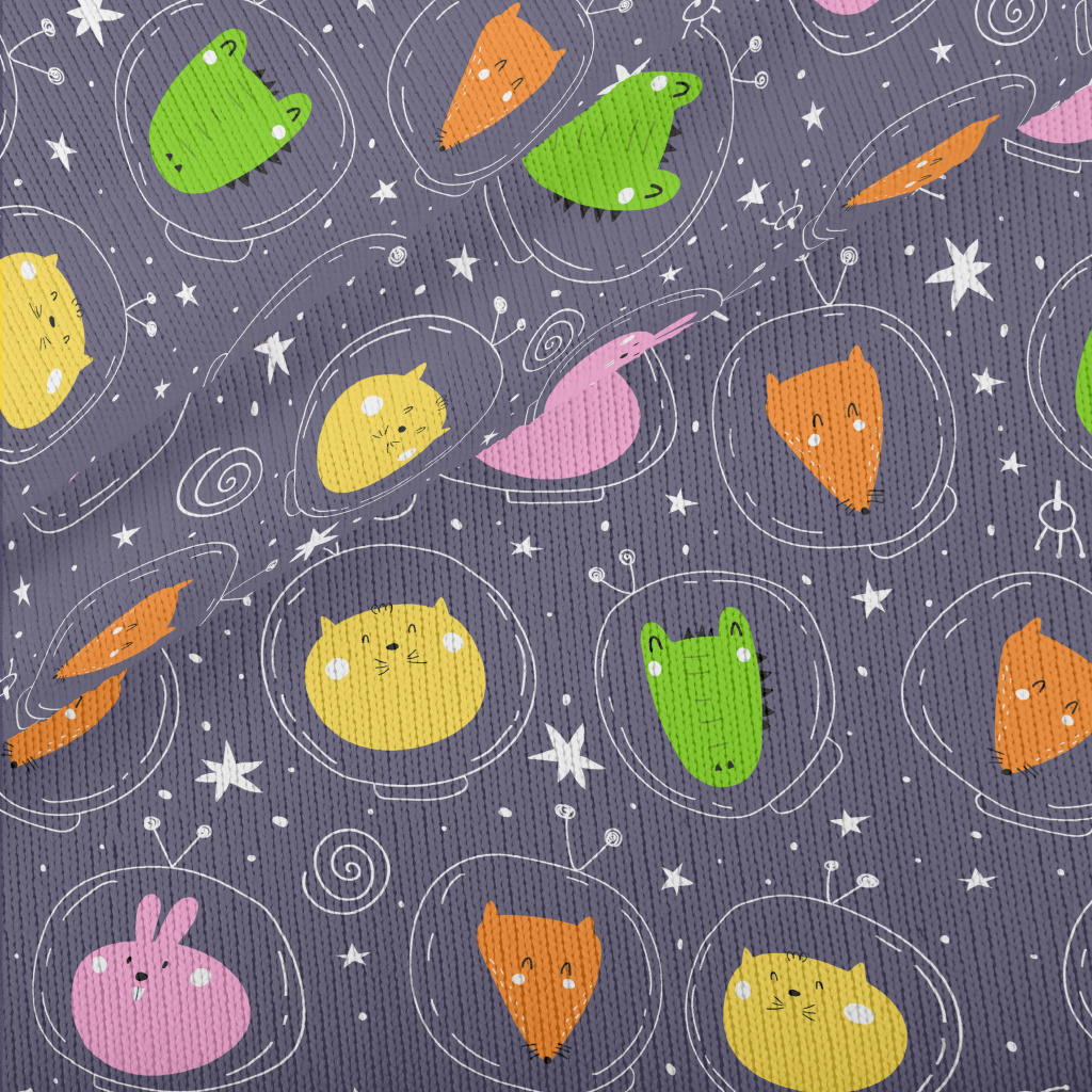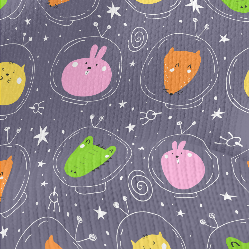 彩色動物太空人仿毛衣布(幅寬150公分)