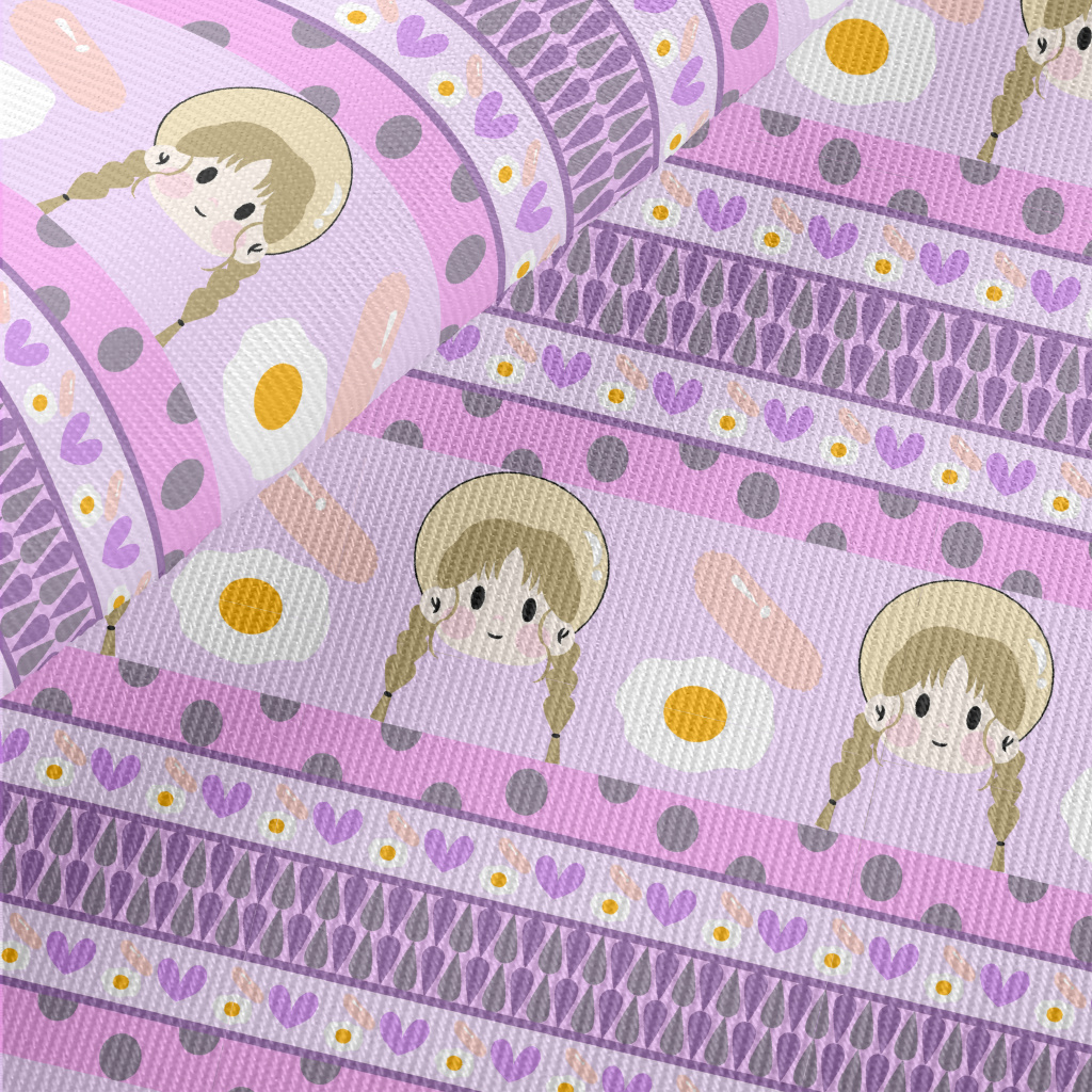 女孩與早餐斜紋布(幅寬150公分)