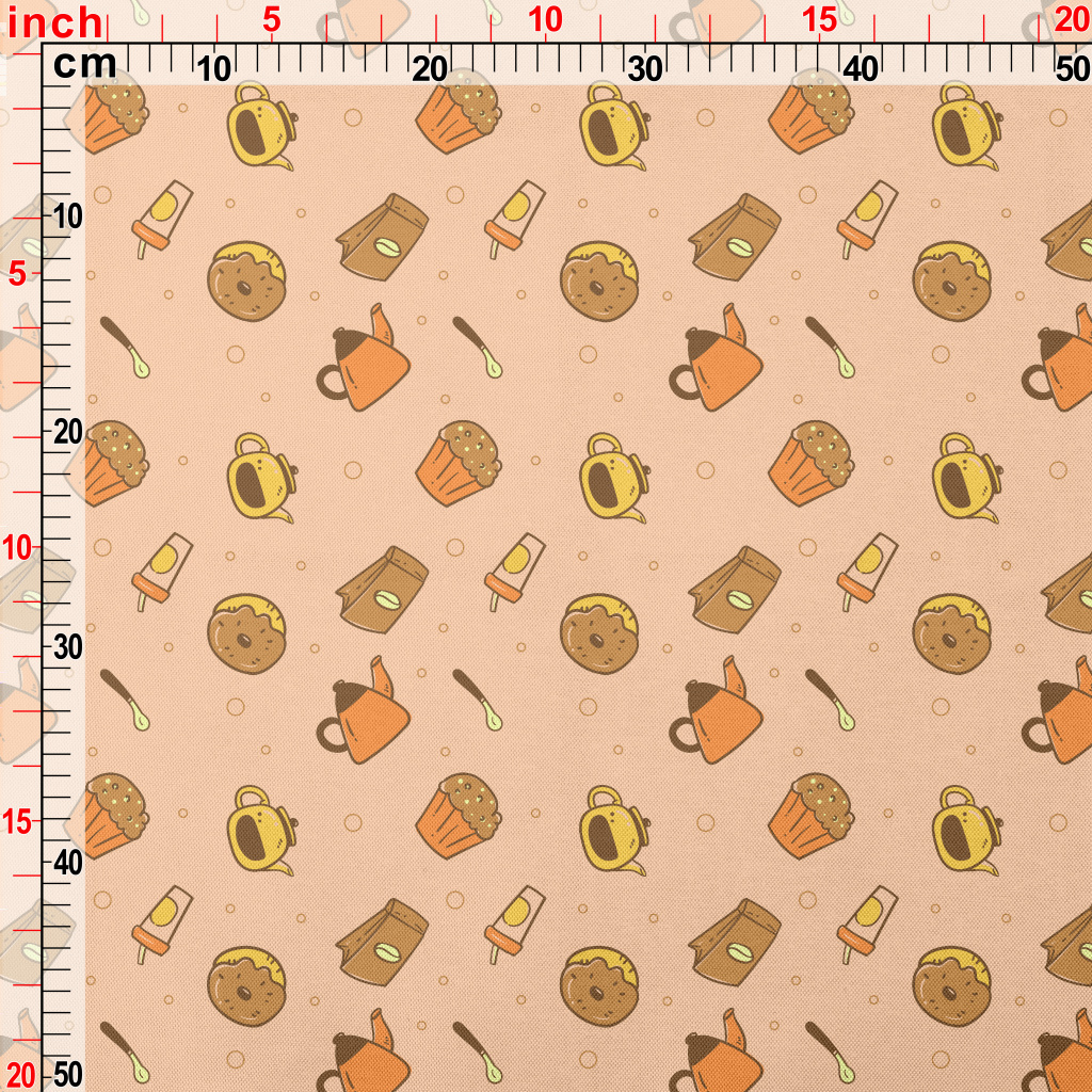 手繪咖啡與甜點春亞紡(幅寬160公分)