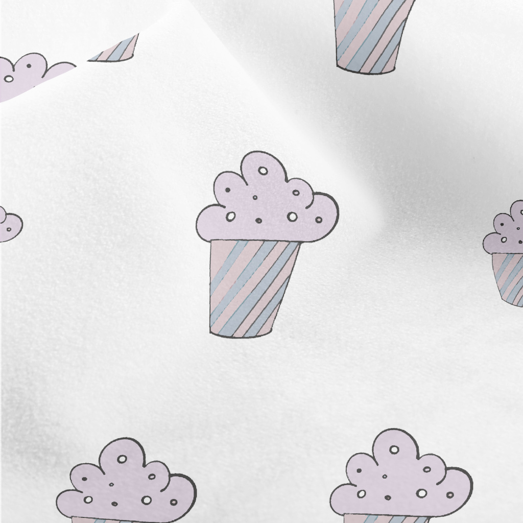手繪紫色杯子蛋糕水晶絨(幅寬160公分)