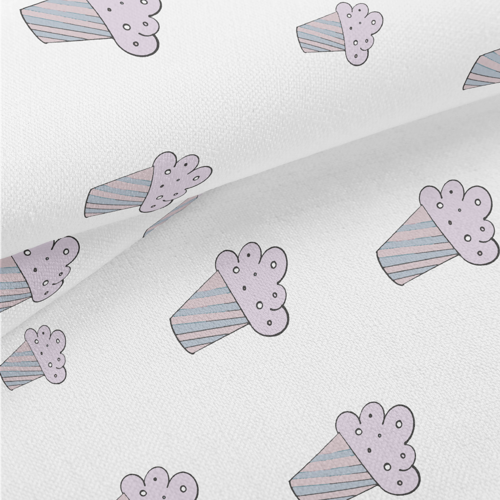 手繪紫色杯子蛋糕竹節麻(幅寬150公分)