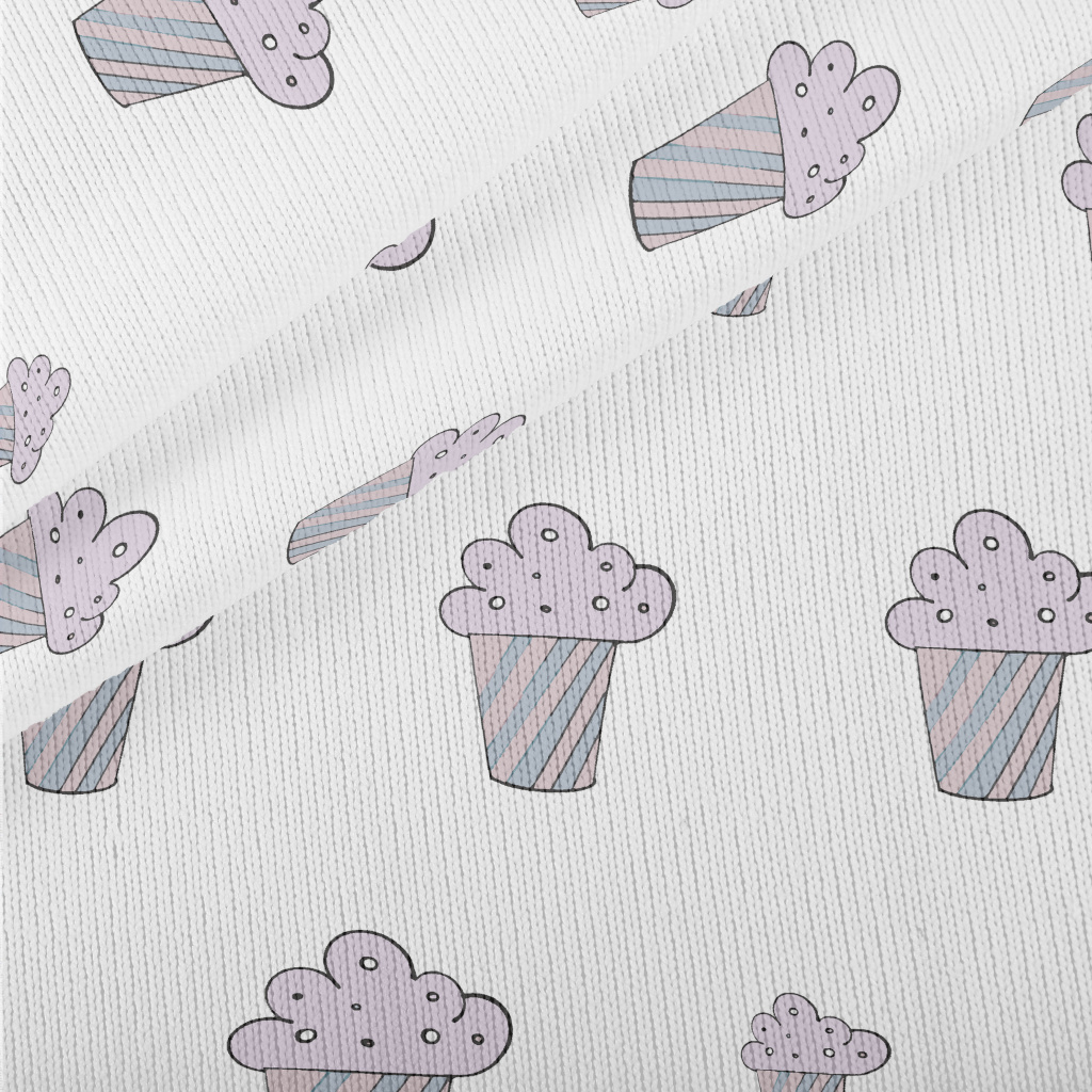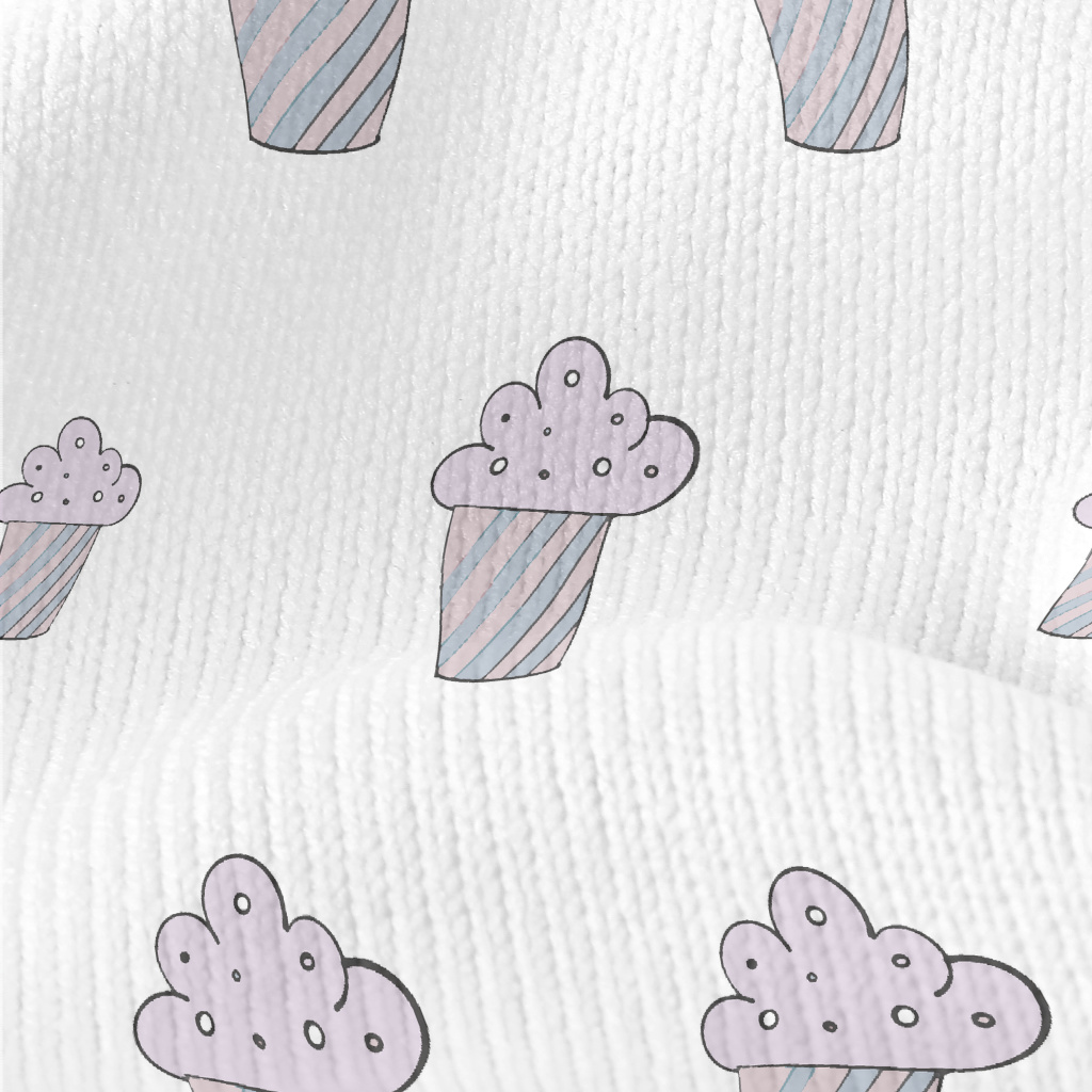 手繪紫色杯子蛋糕仿毛衣布(幅寬150公分)
