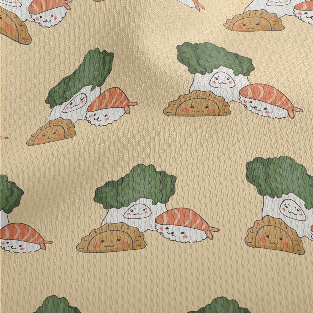 日本壽司與蔬菜鳥眼布(幅寬160公分)