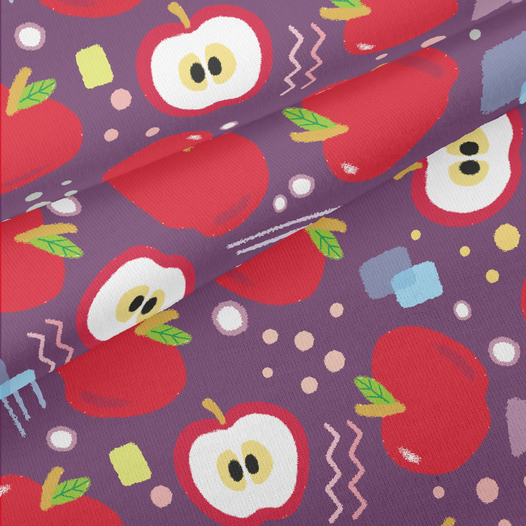 蠟筆手繪蘋果仿棉布(幅寬150公分)