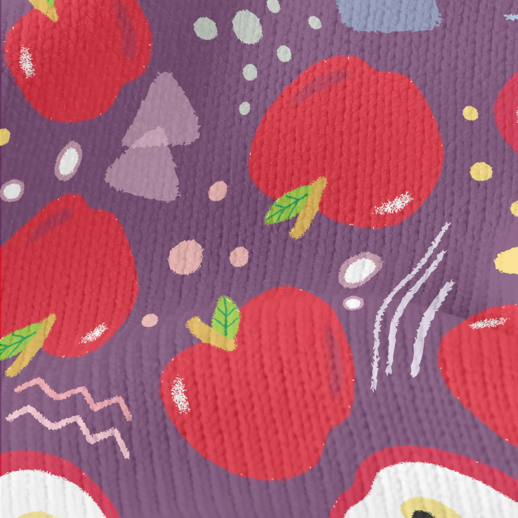 蠟筆手繪蘋果仿毛衣布(幅寬150公分)