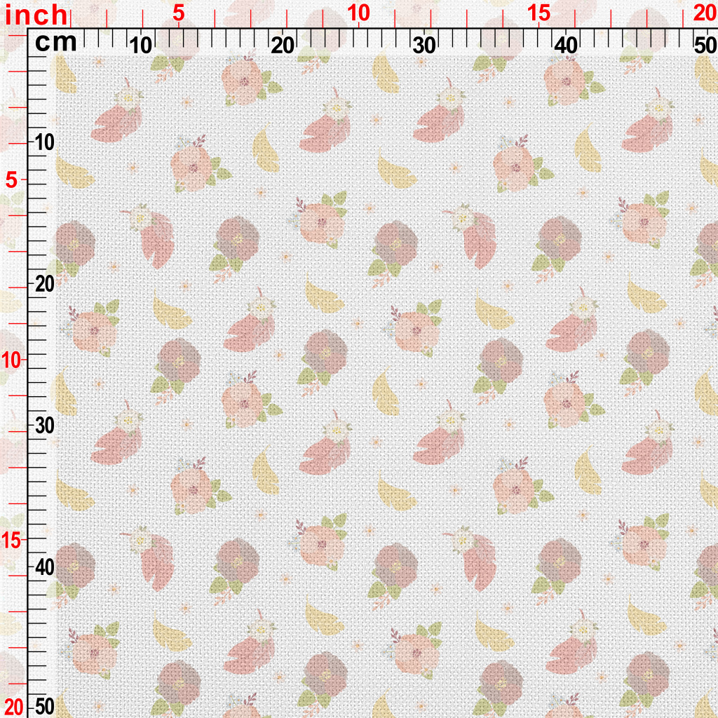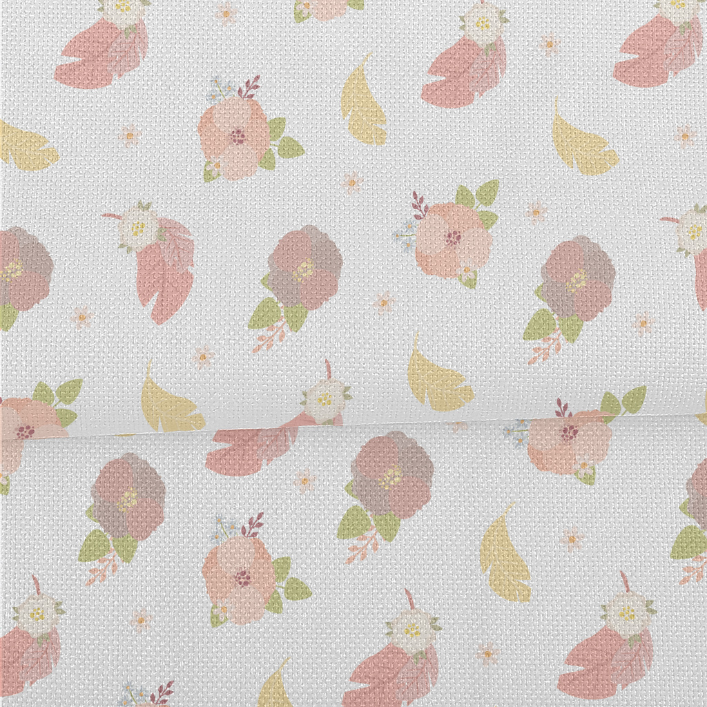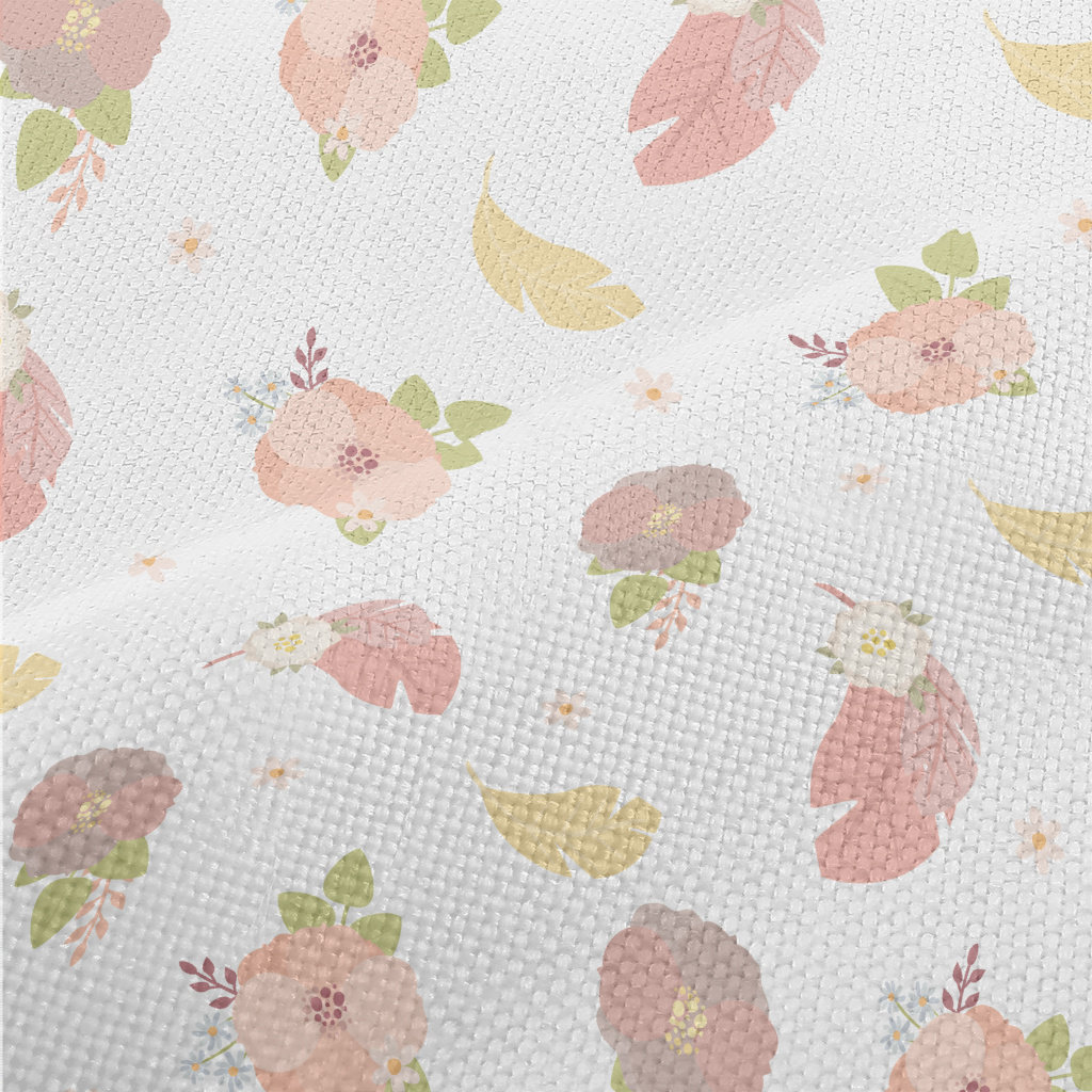 優雅花朵與羽毛麻布(幅寬150公分)