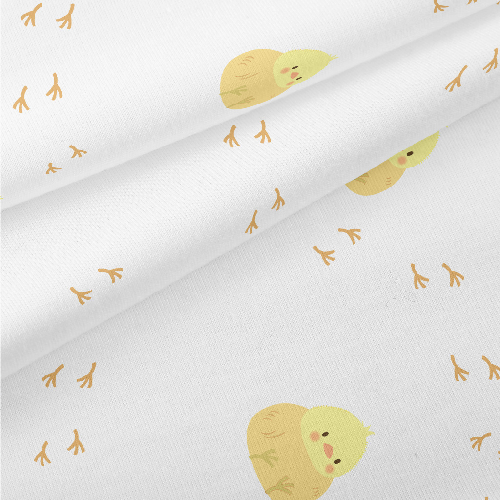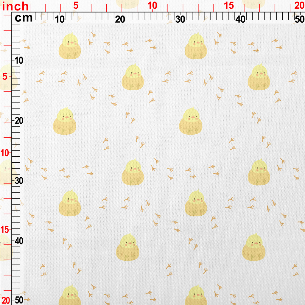 可愛小雞與腳印仿棉布(幅寬150公分)