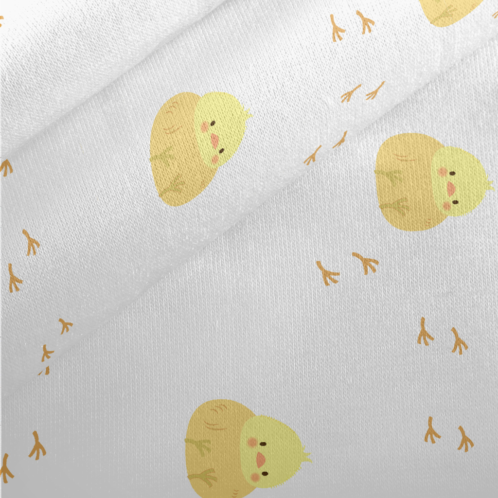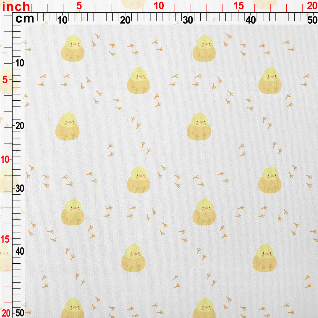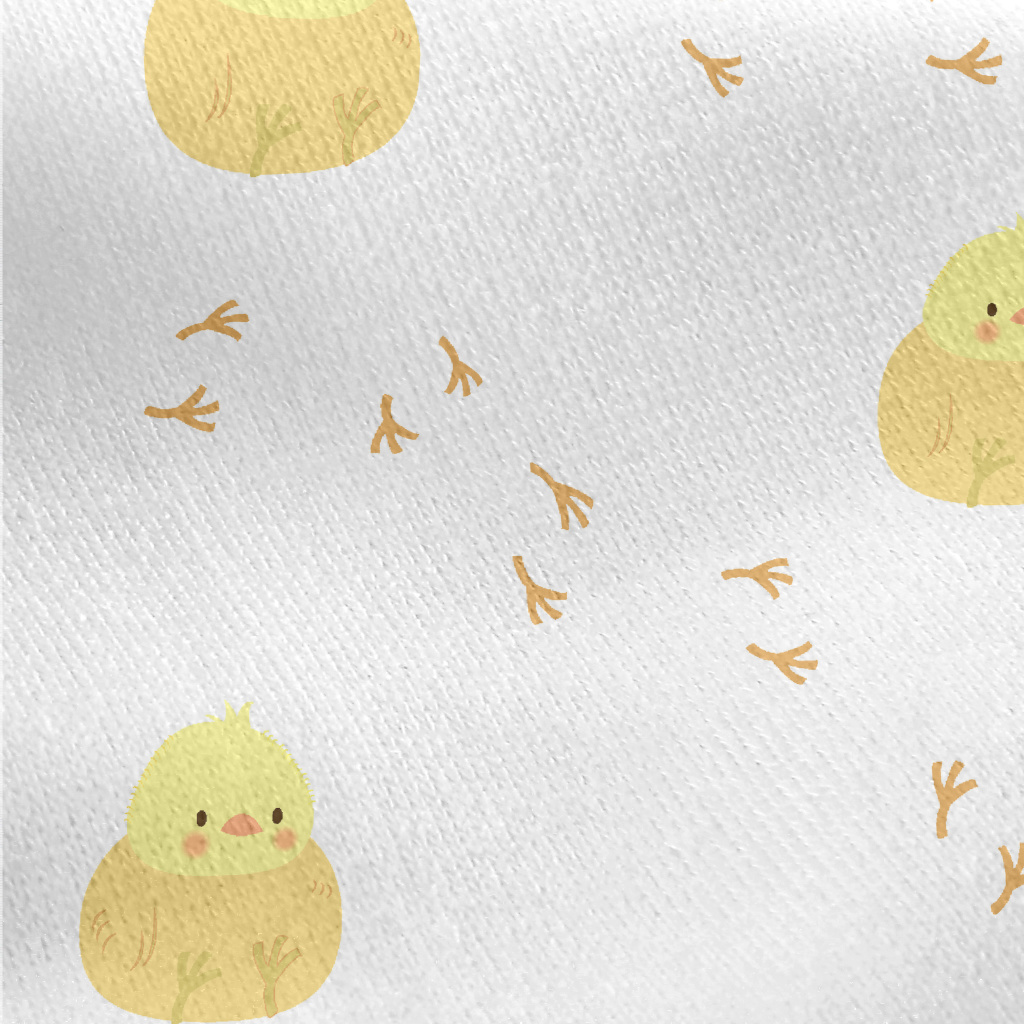 可愛小雞與腳印刷毛布(幅寬150公分)
