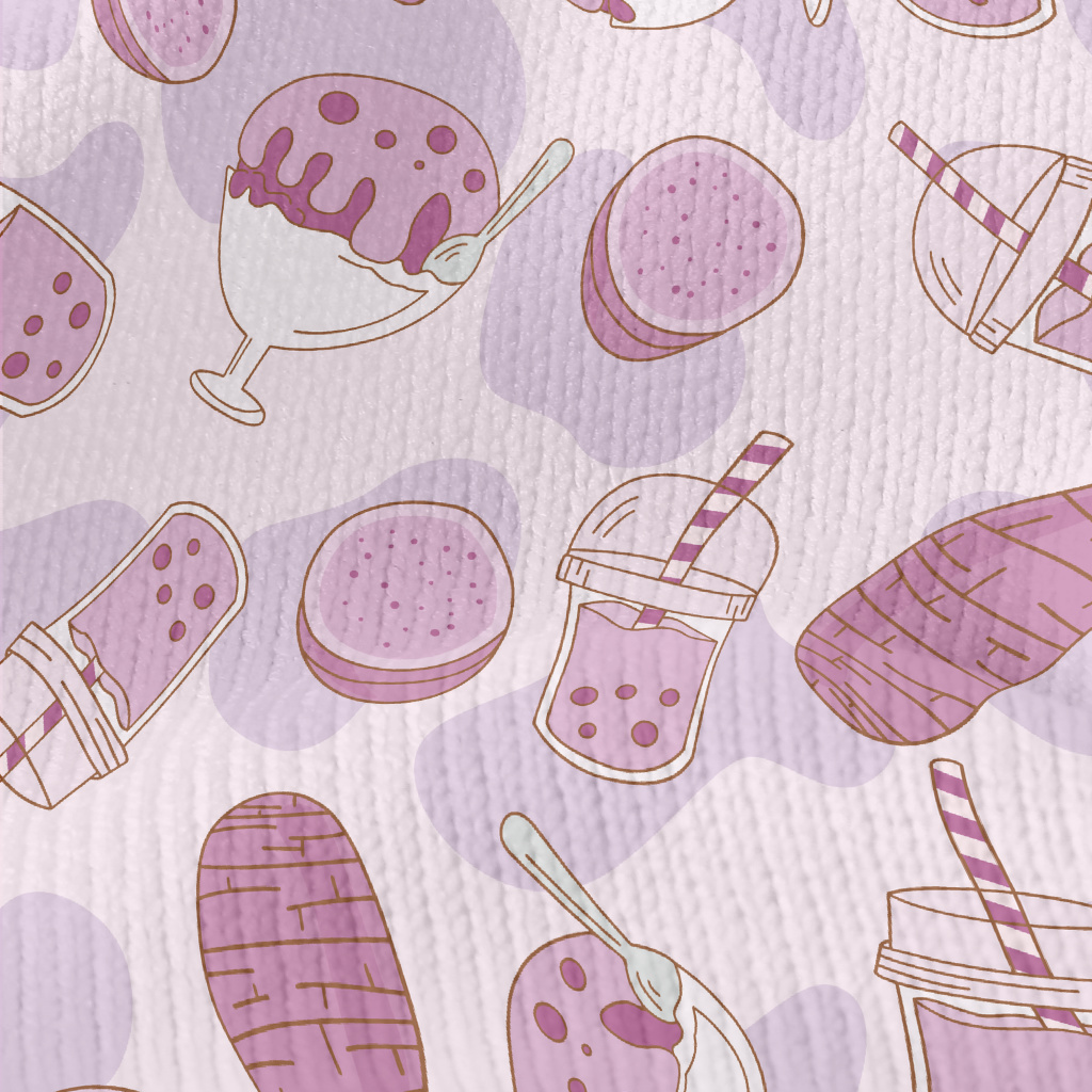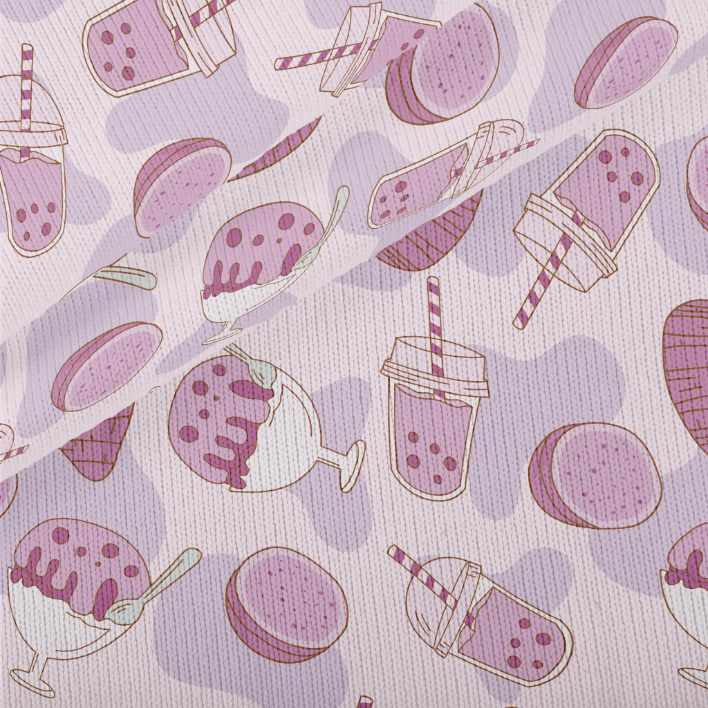 芋頭奶茶與甜點仿毛衣布(幅寬150公分)