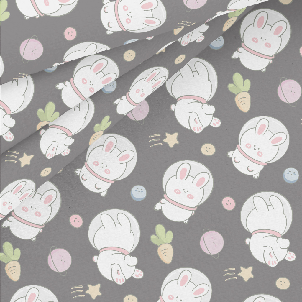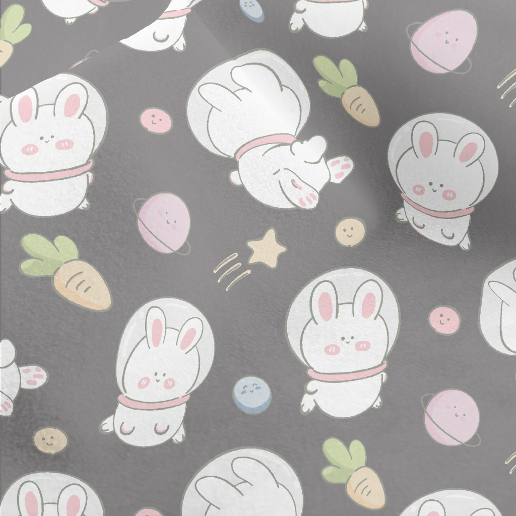 可愛兔子在太空水晶絨(幅寬160公分)