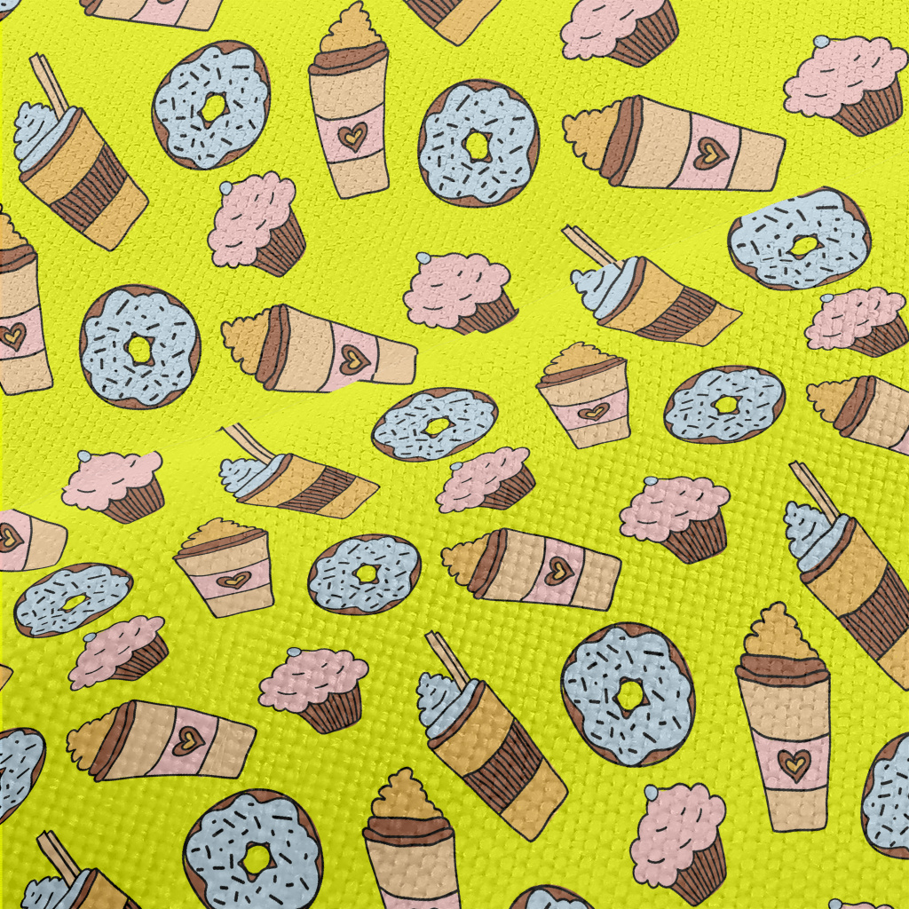 塗鴉奶昔與甜甜圈麻布(幅寬150公分)