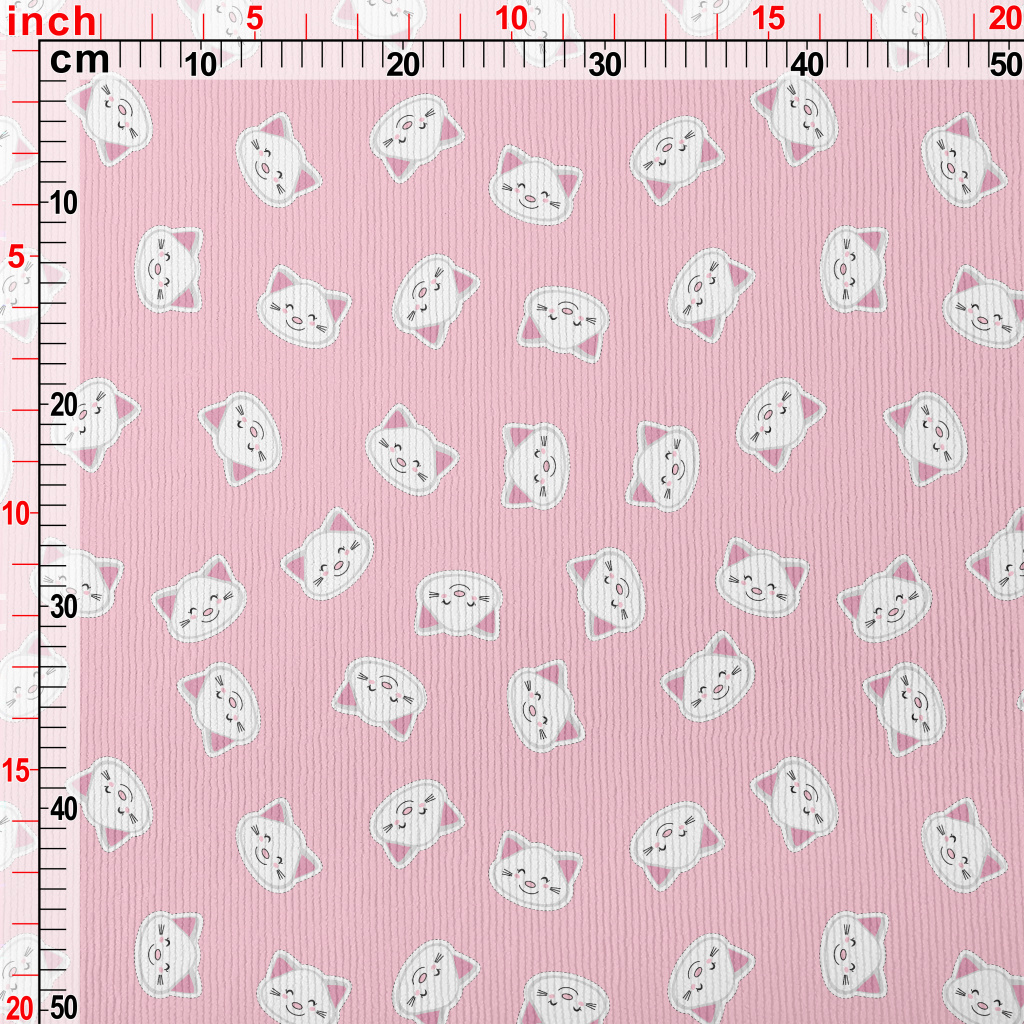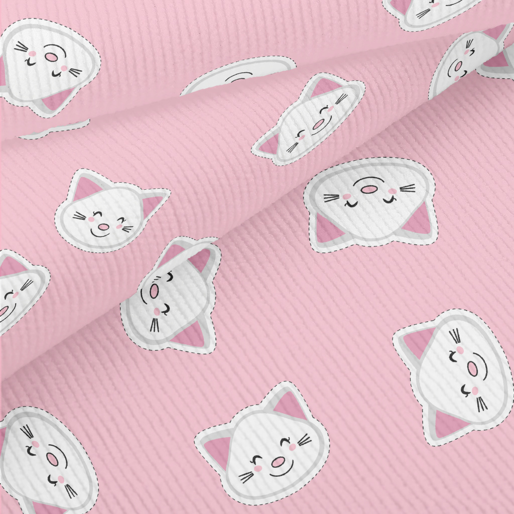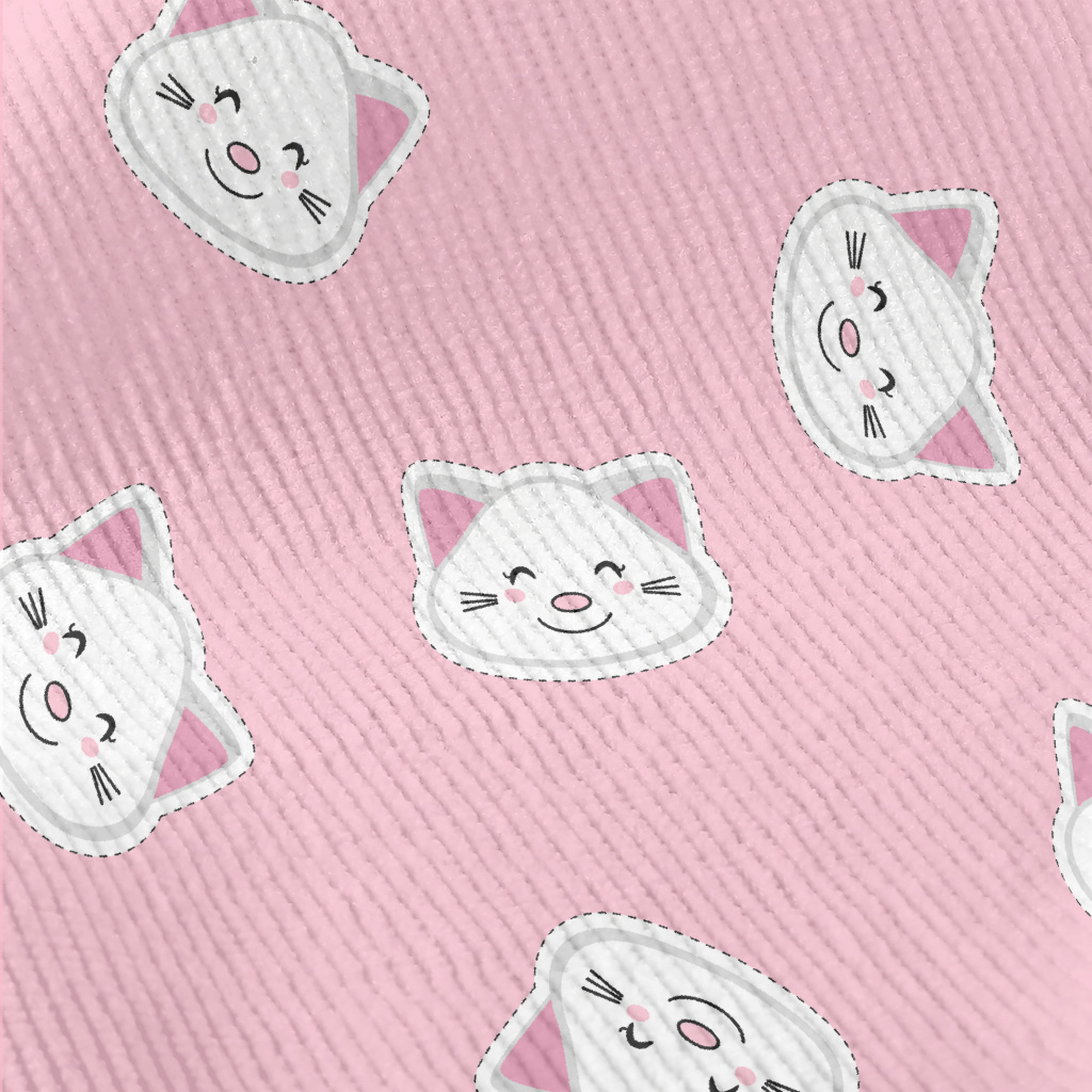 白色貓咪貼紙燈芯絨(幅寬150公分)