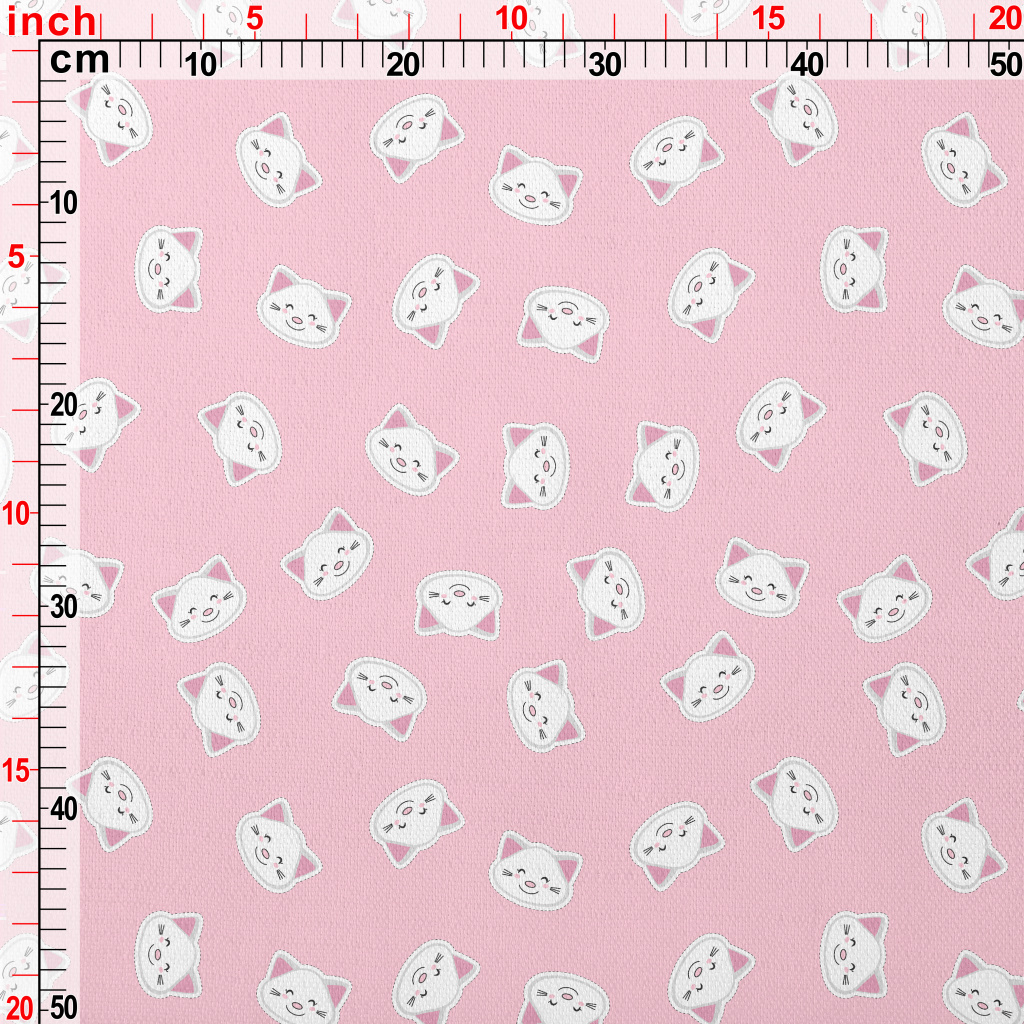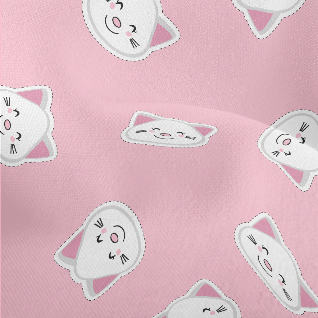 白色貓咪貼紙竹節麻(幅寬150公分)