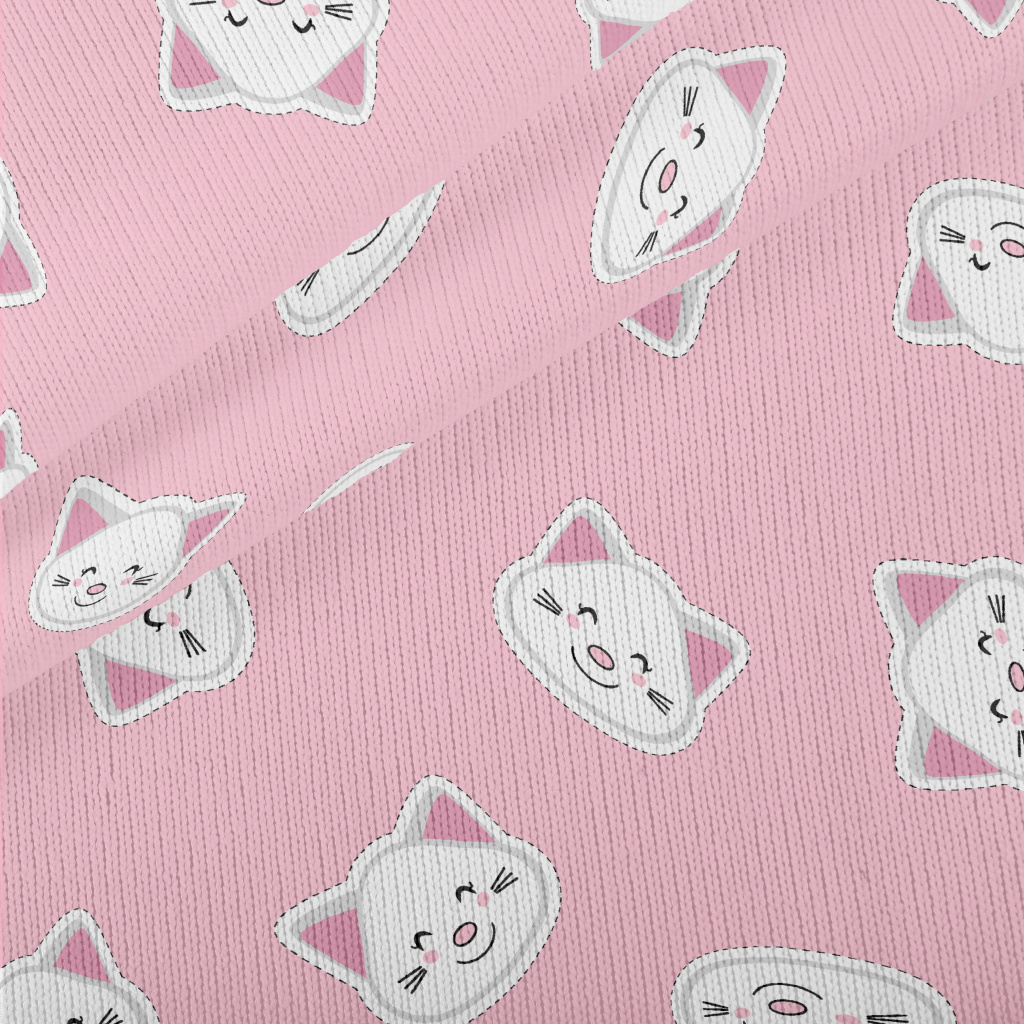 白色貓咪貼紙仿毛衣布(幅寬150公分)