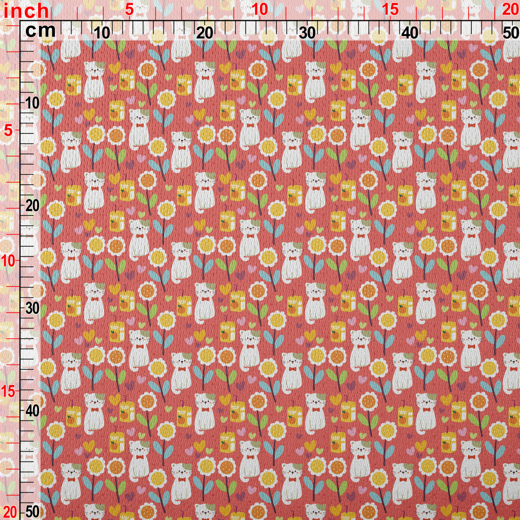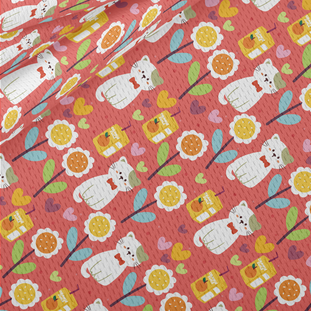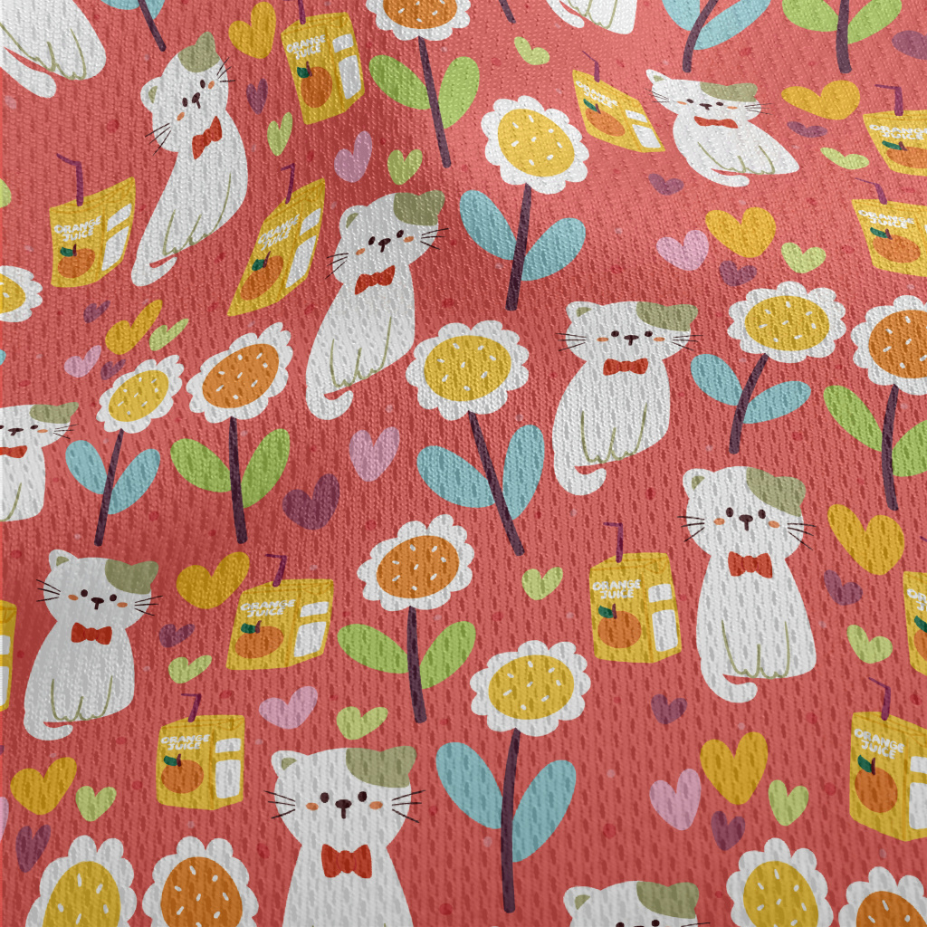 貓咪與橘子汁鳥眼布(幅寬160公分)