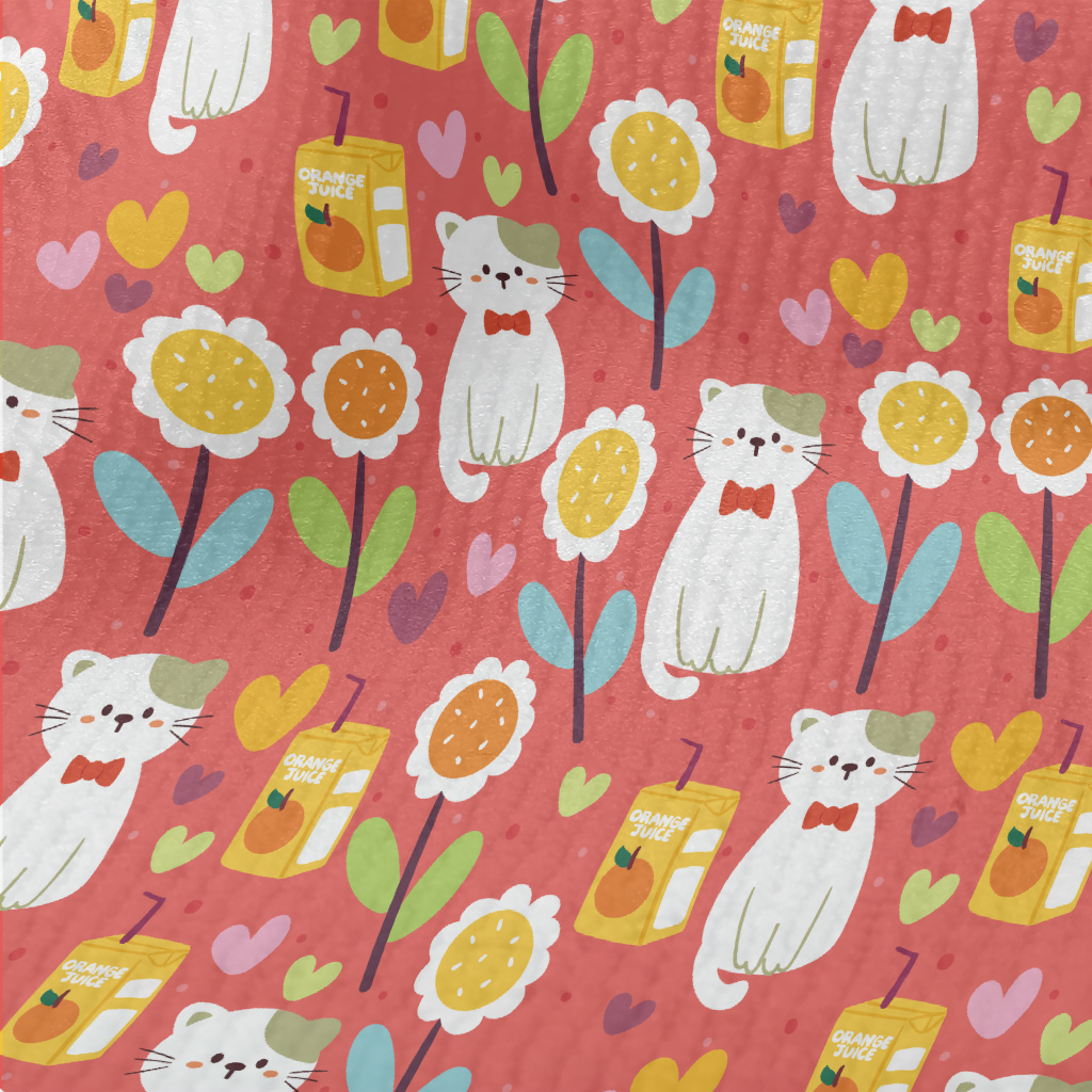 貓咪與橘子汁毛巾布(幅寬160公分)