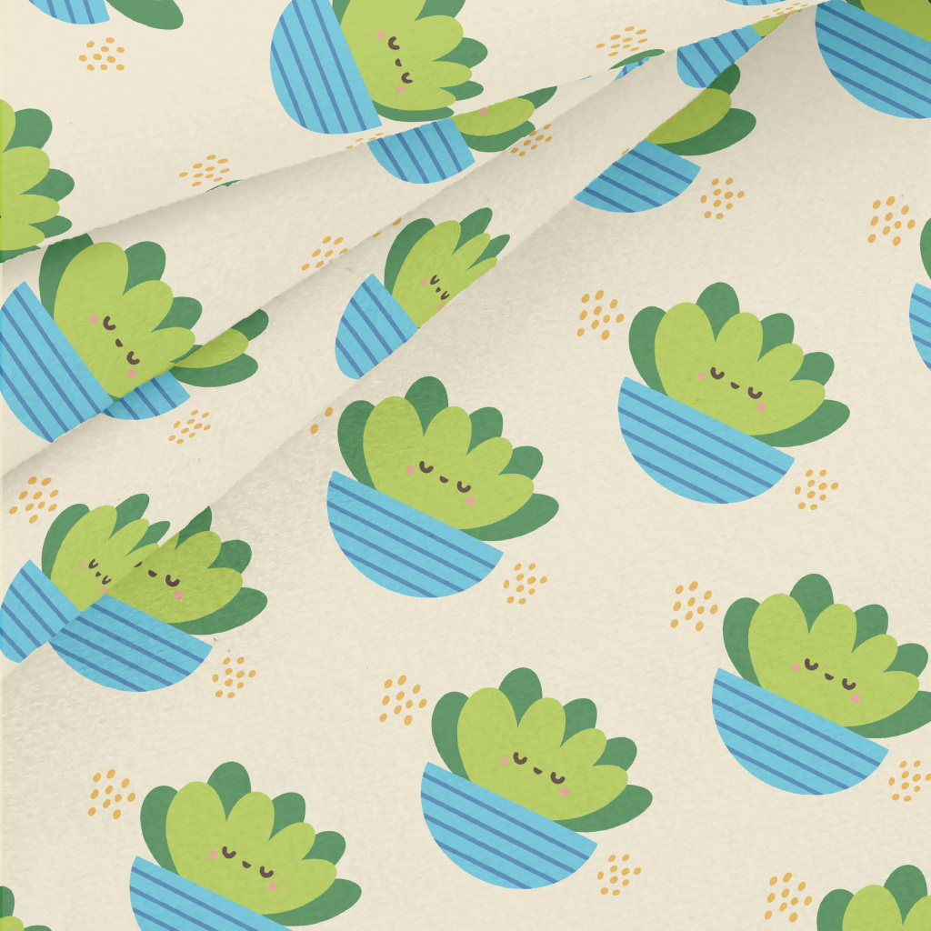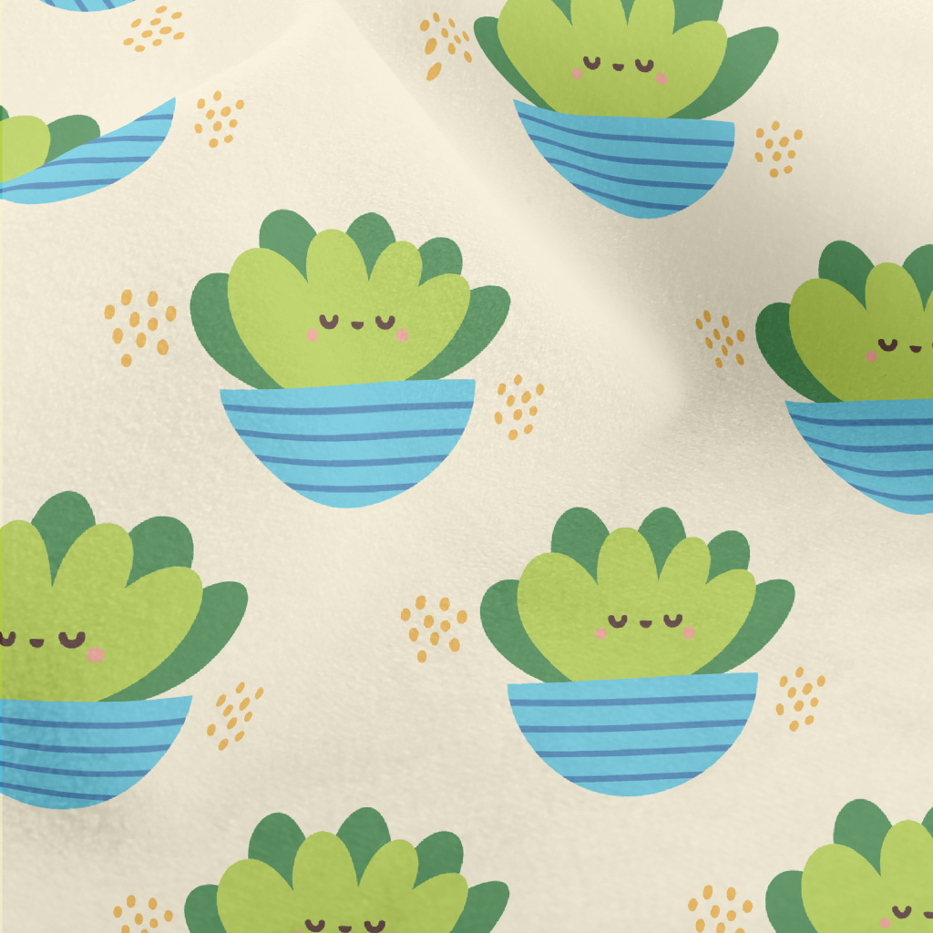 可愛手繪仙人掌水晶絨(幅寬160公分)