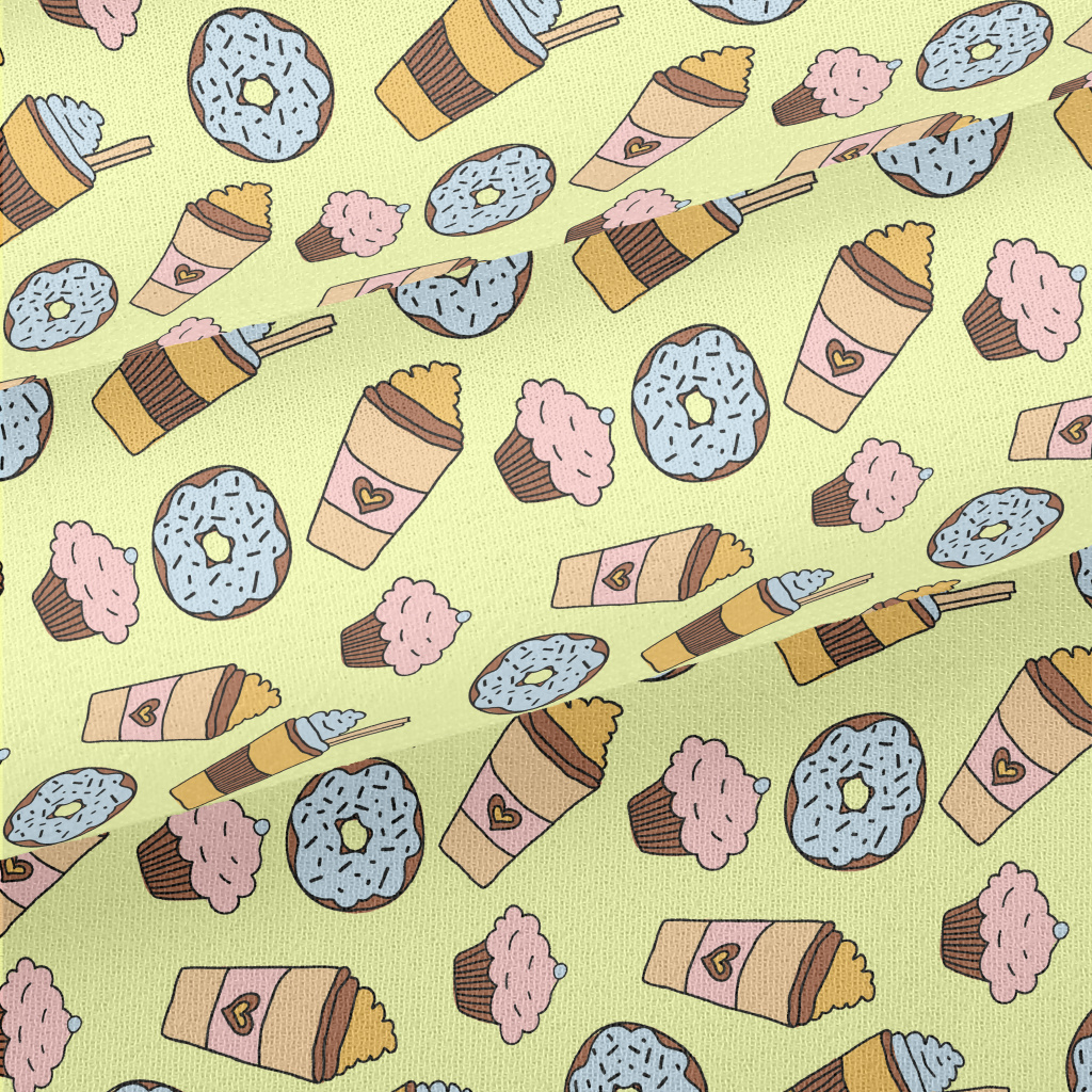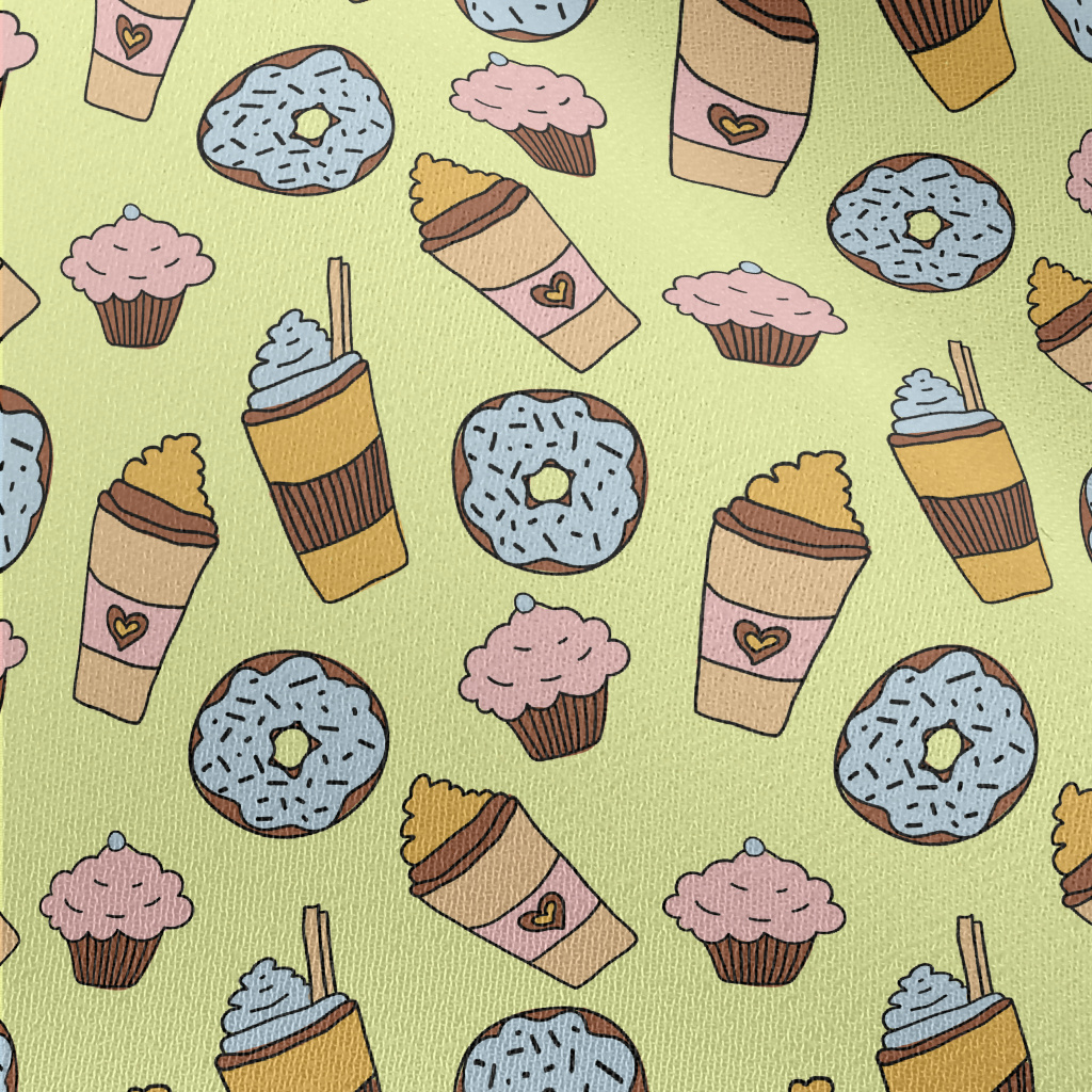 手繪甜甜圈與咖啡雪紡布(幅寬150公分)