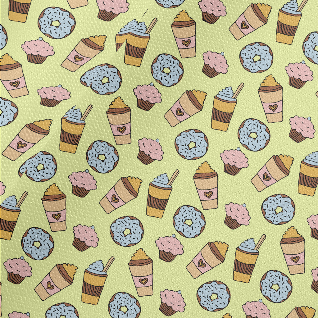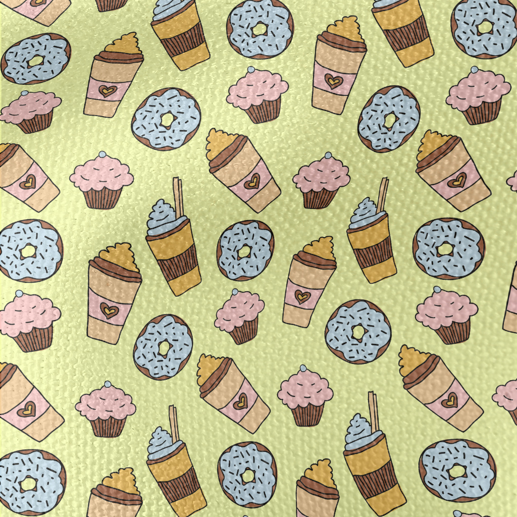 手繪甜甜圈與咖啡帆布(幅寬150公分)