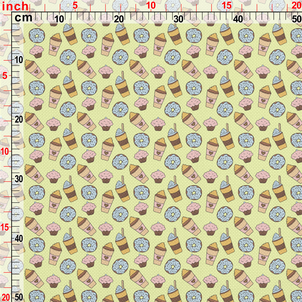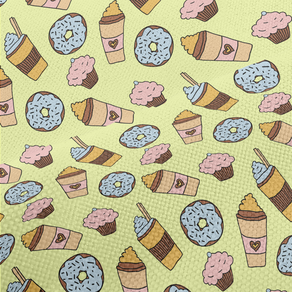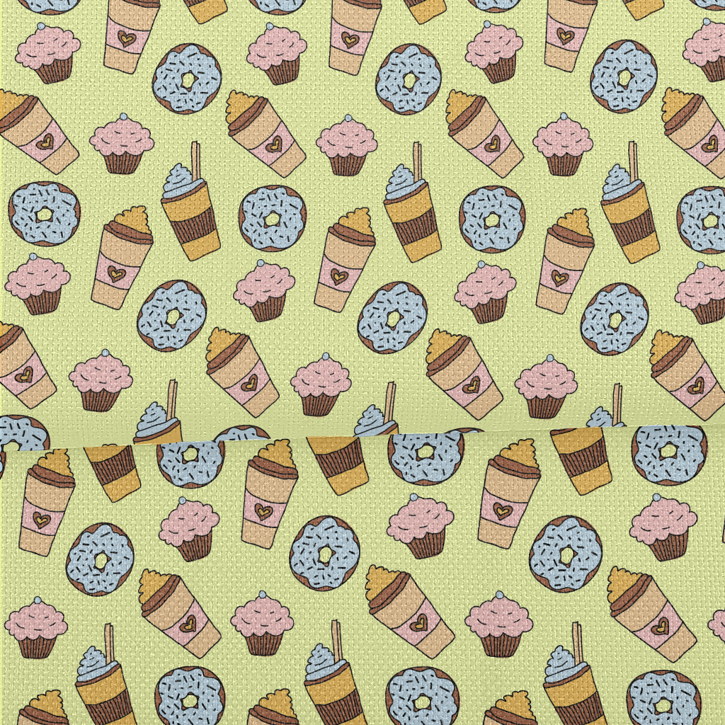 手繪甜甜圈與咖啡麻布(幅寬150公分)