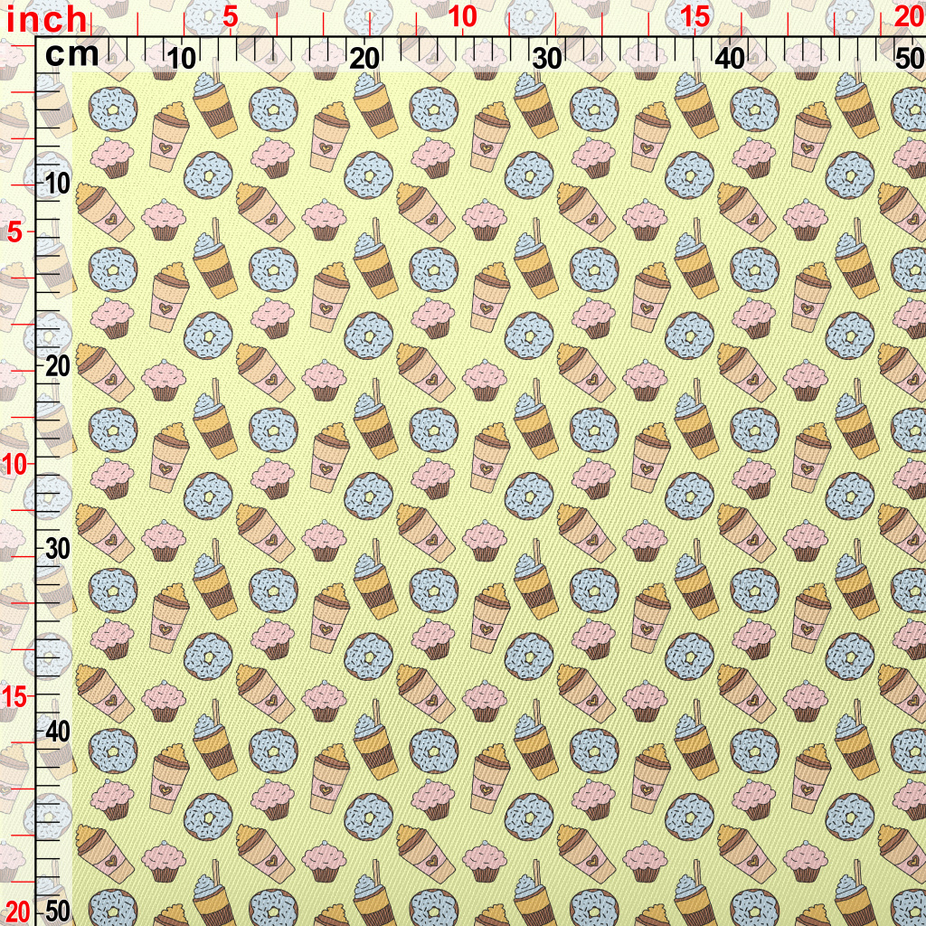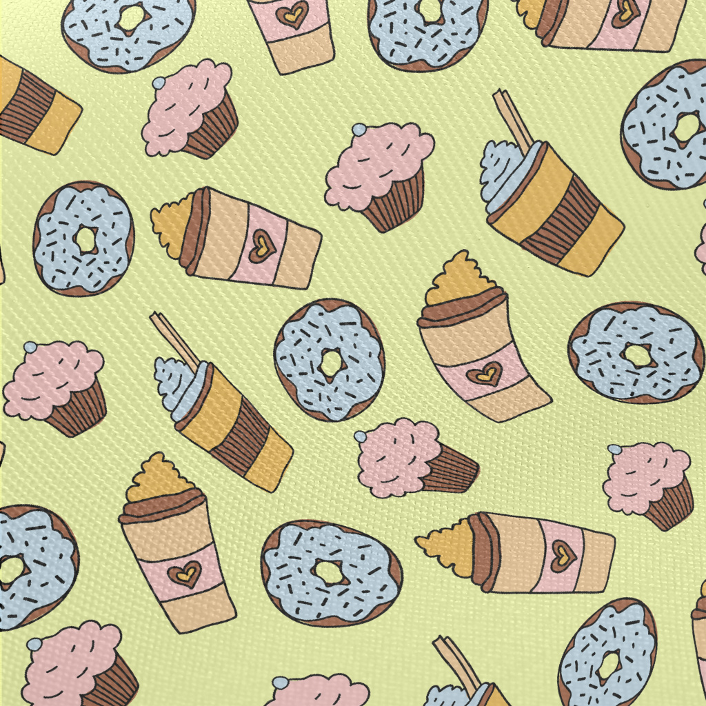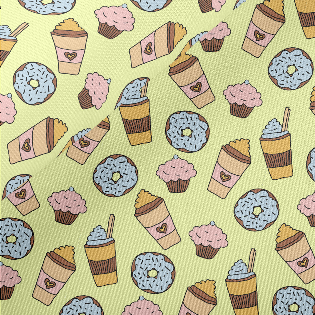 手繪甜甜圈與咖啡斜紋布(幅寬150公分)
