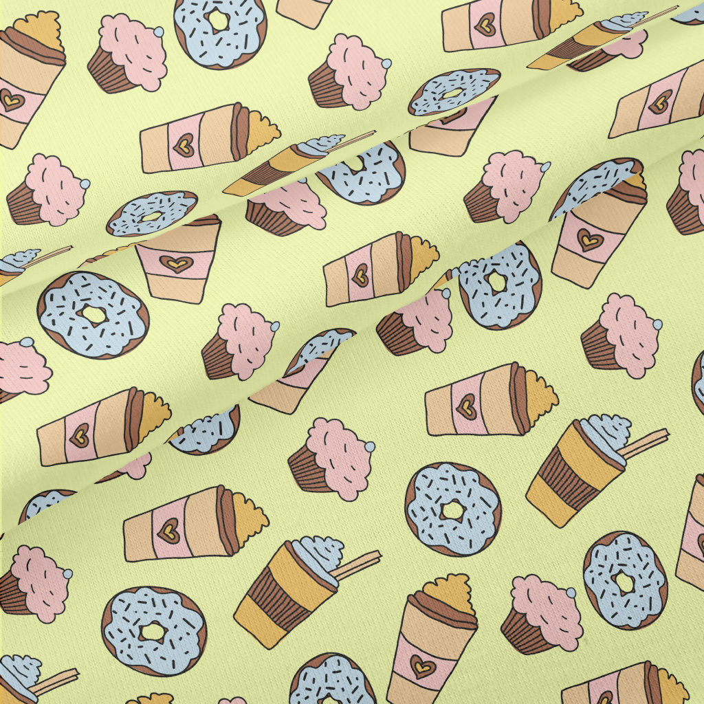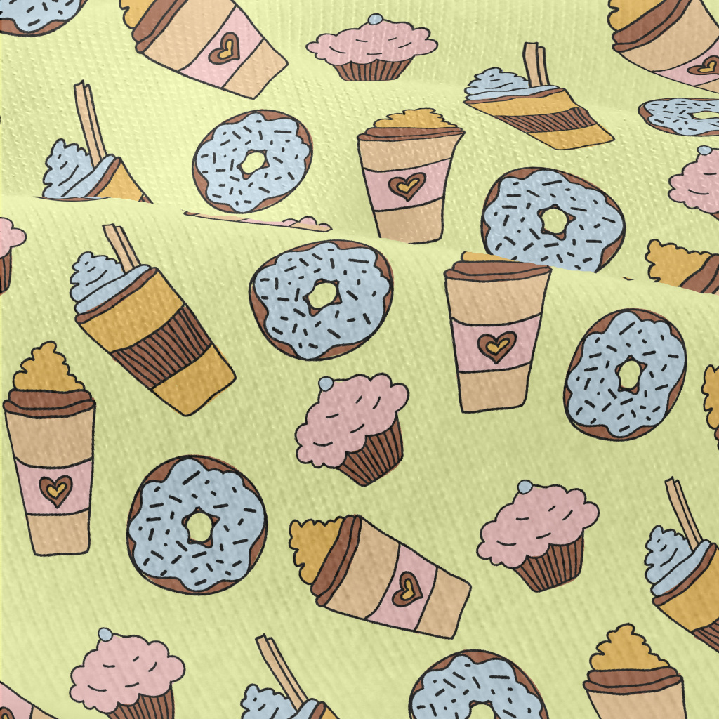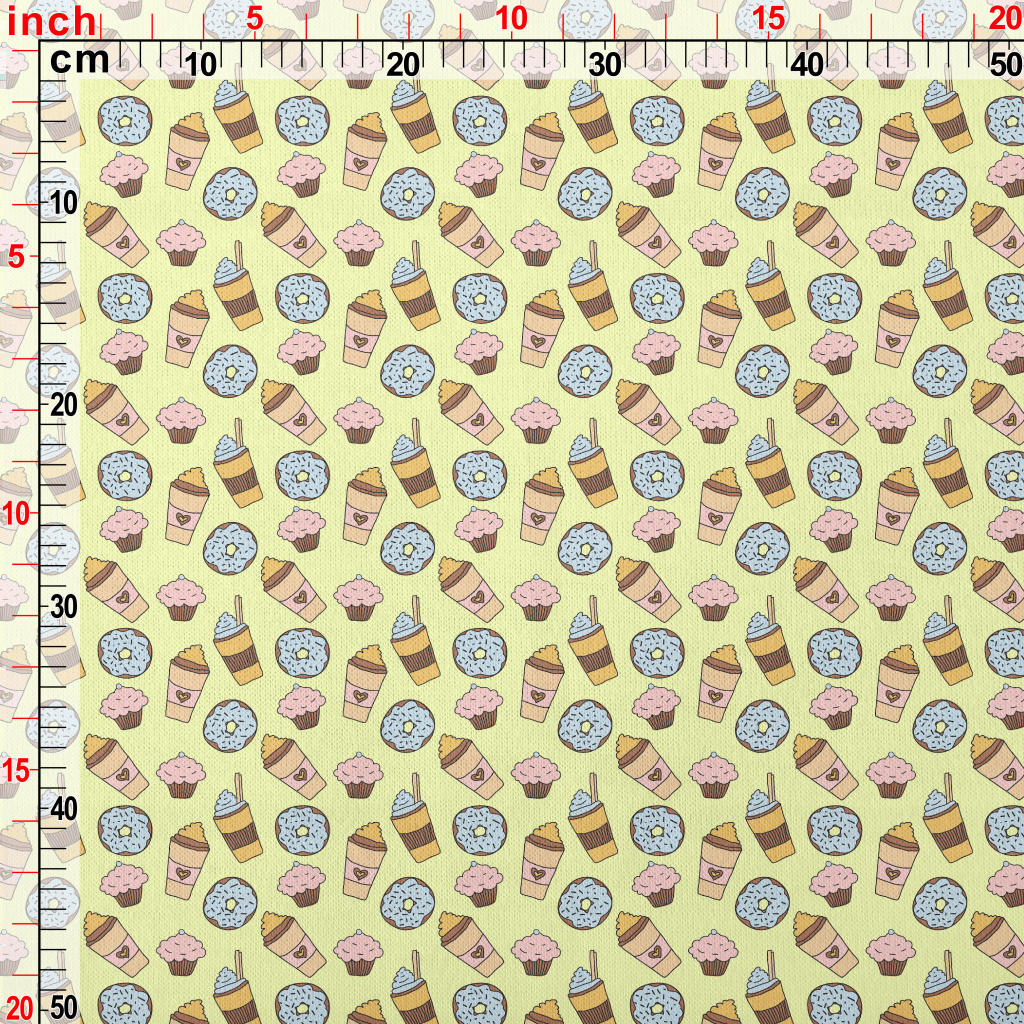 手繪甜甜圈與咖啡仿棉布(幅寬150公分)