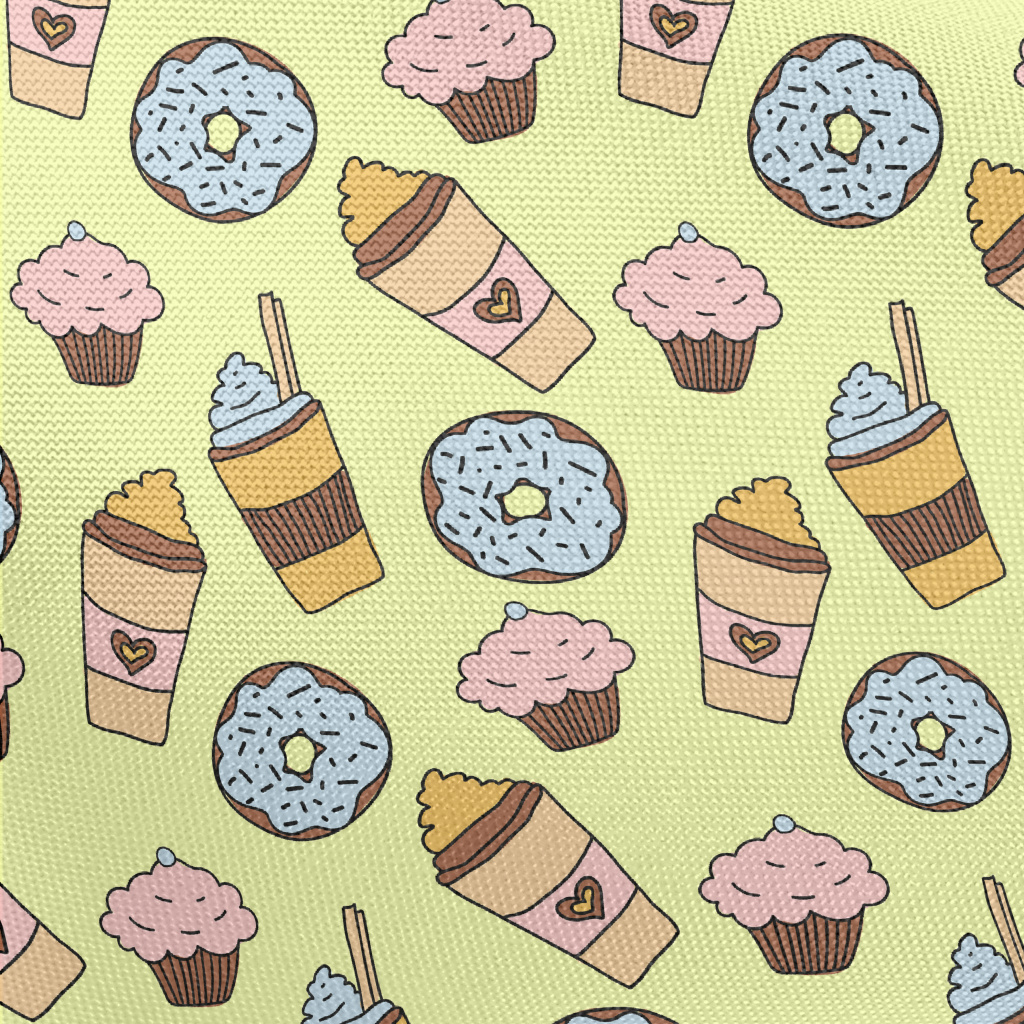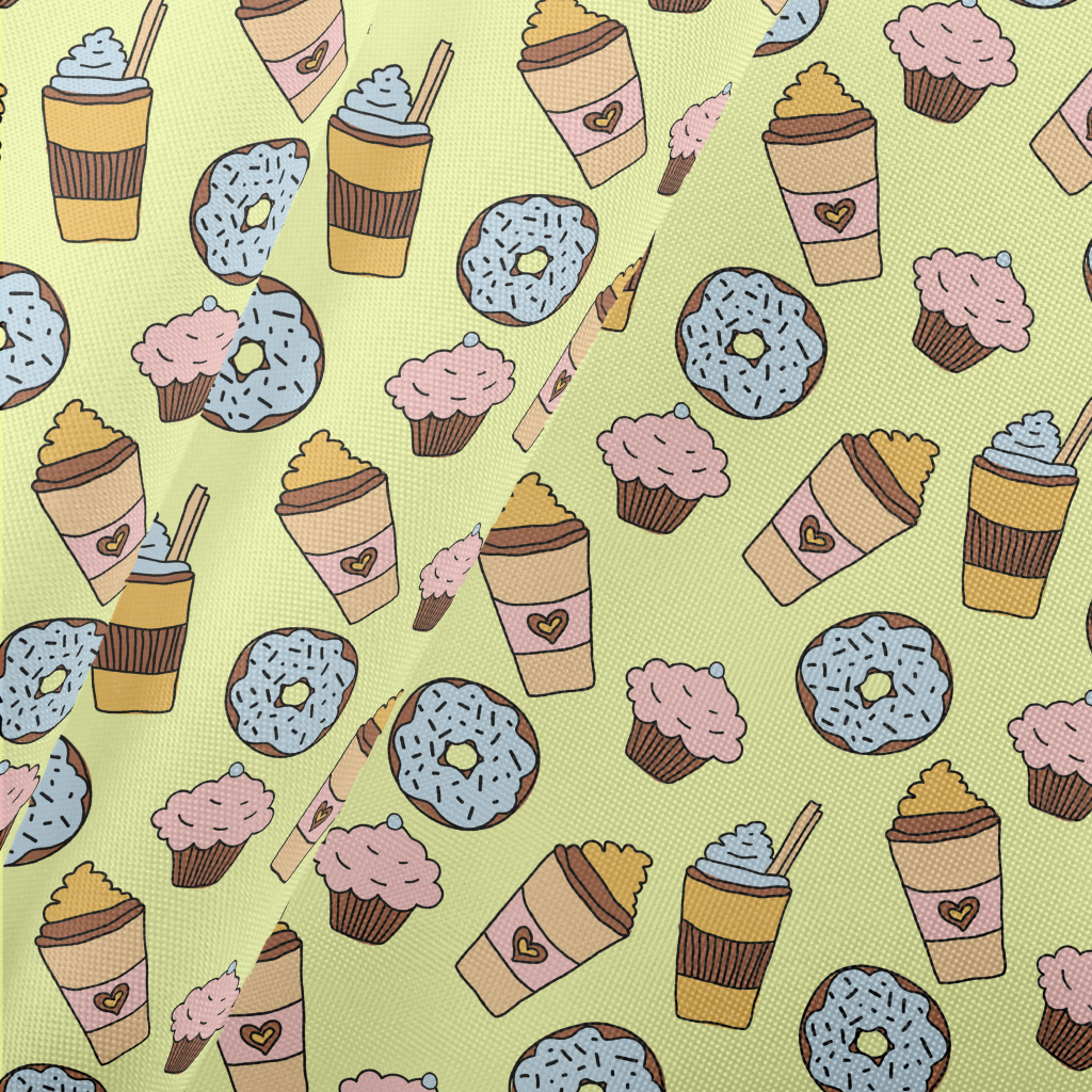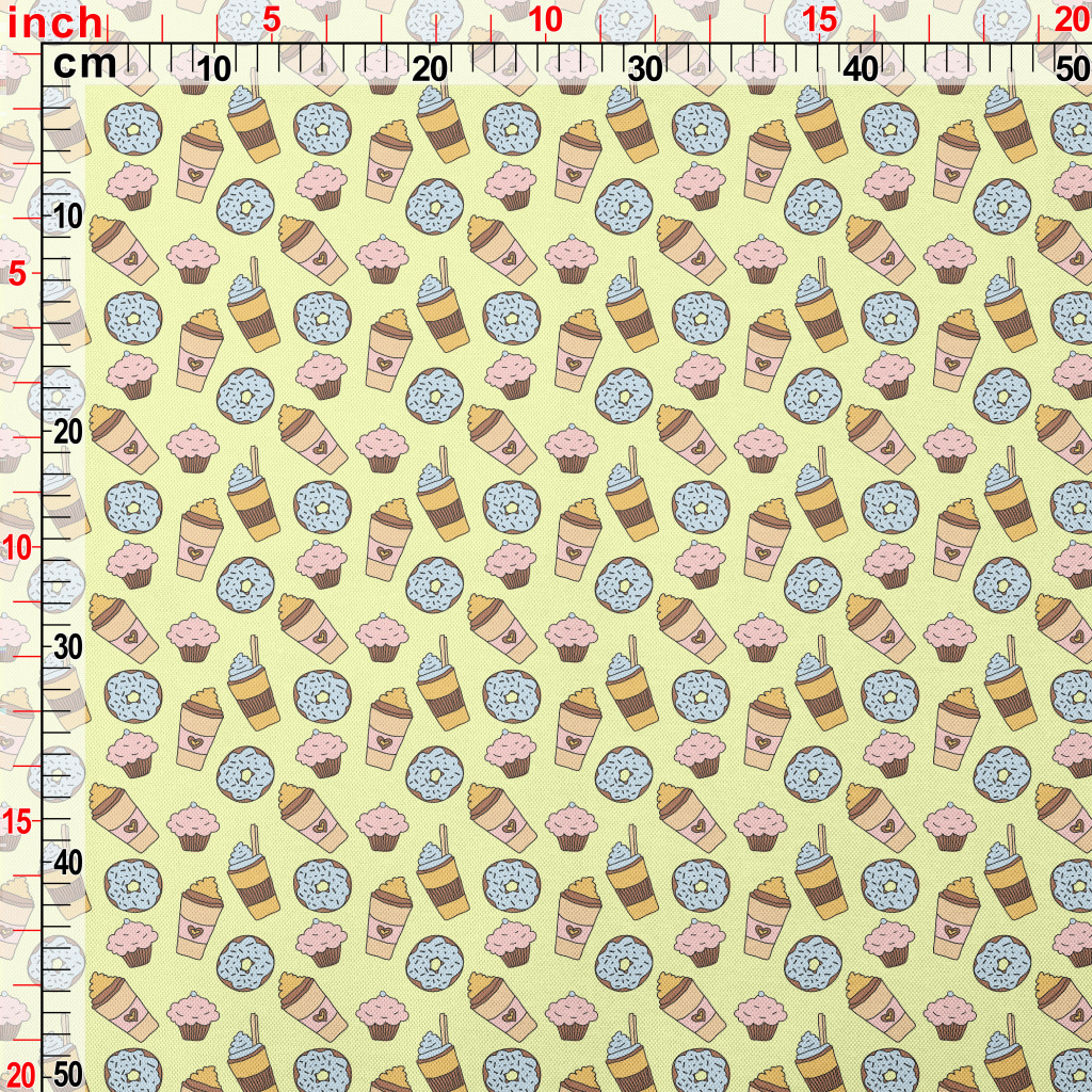 手繪甜甜圈與咖啡春亞紡(幅寬160公分)