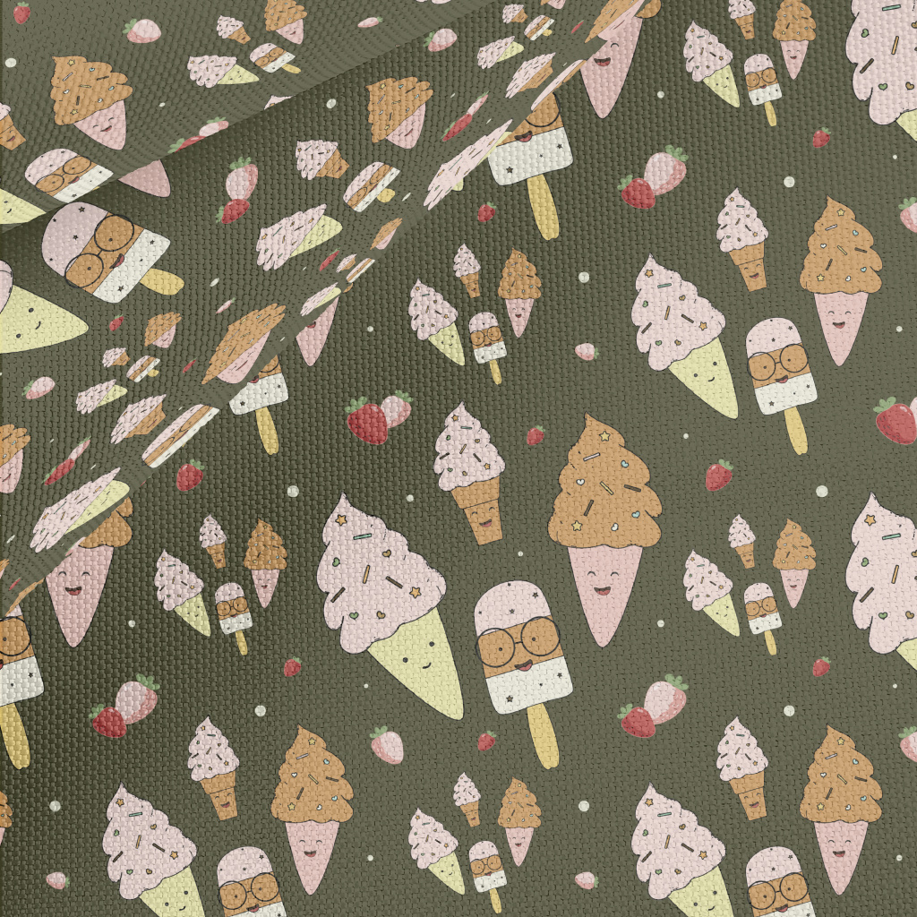 手繪霜淇淋與冰棒牛津布(幅寬150公分)