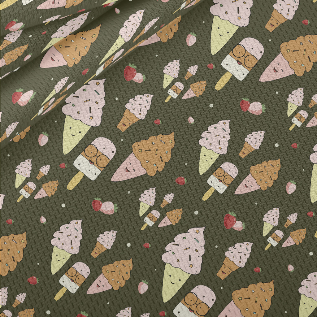 手繪霜淇淋與冰棒鳥眼布(幅寬160公分)