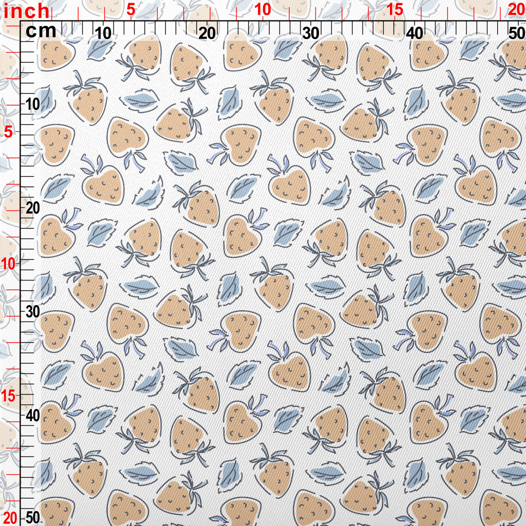 手繪草莓與葉子厚棉布(幅寬150公分)