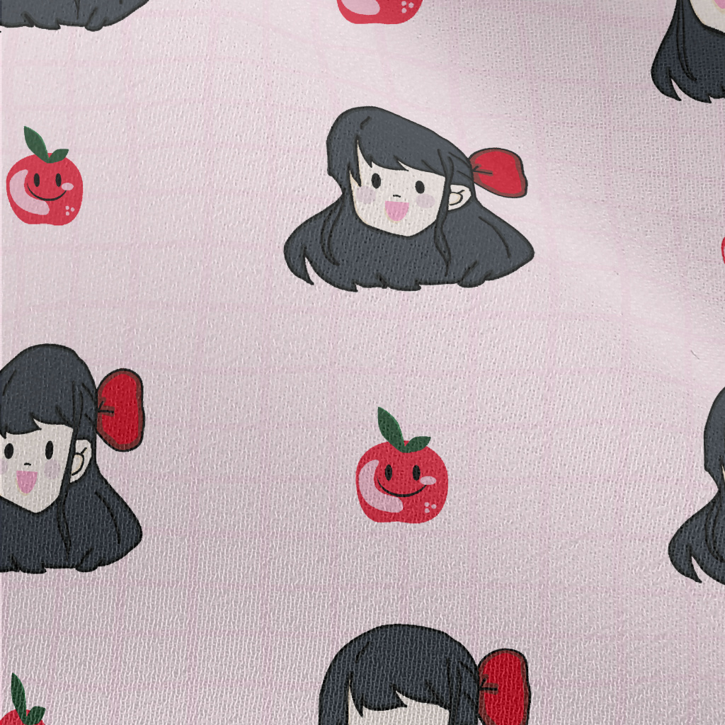 漫畫女孩與蘋果雪紡布(幅寬150公分)